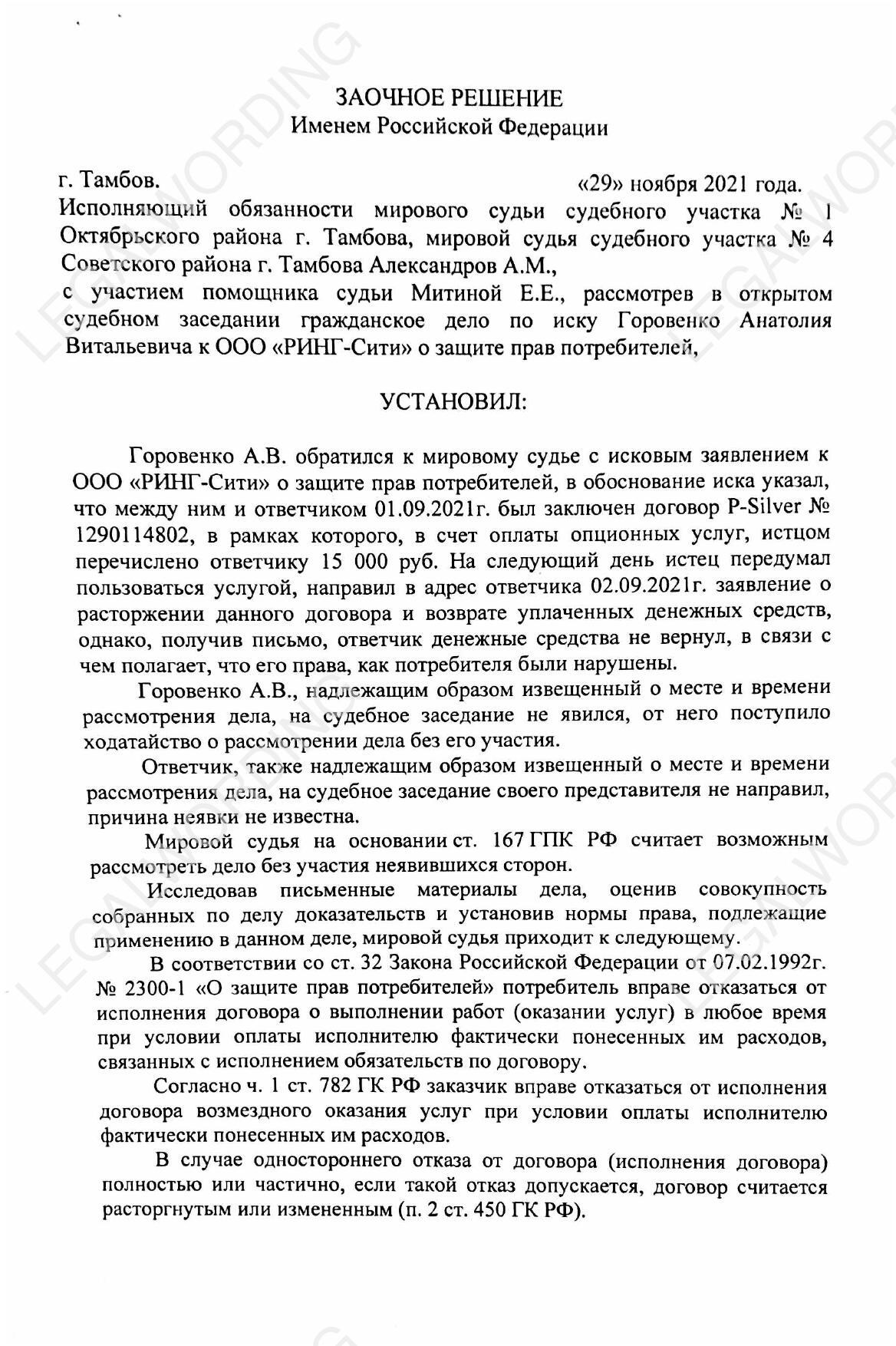 расторжение договора