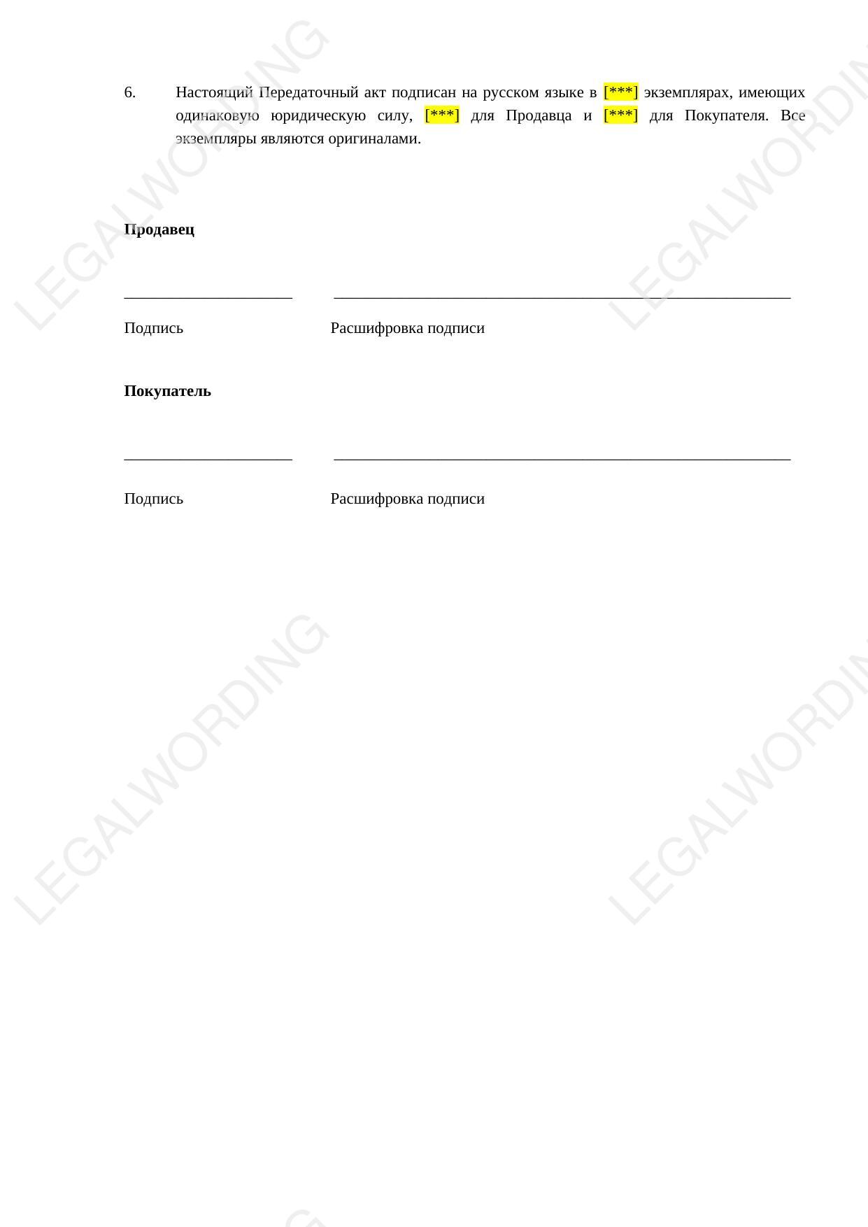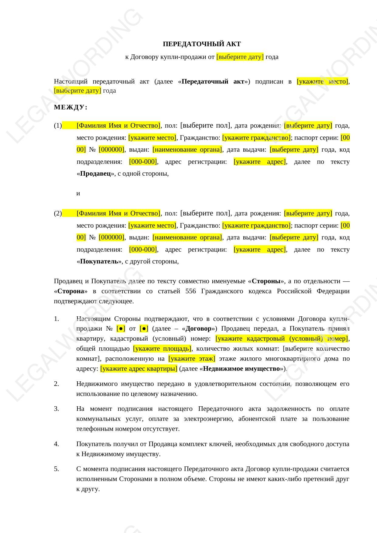 A sample transfer deed that can be used to confirm the transfer of an apartment from seller to buyer.