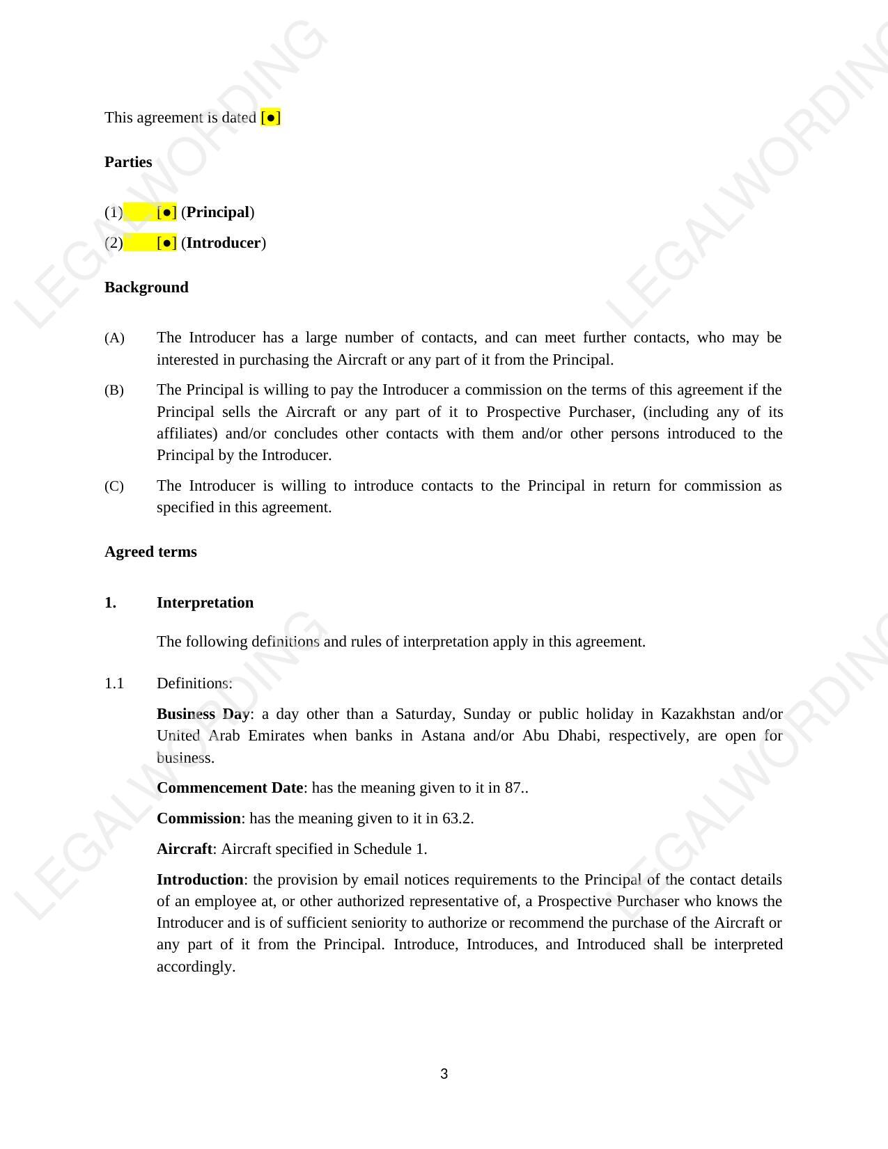 An agency agreement is a legal document entered into between the principal (the owner of a private aircraft) and the agent (the person or company responsible for finding a buyer and completing the transaction). The main features of an agency agreement are: 1. Agent authorities. The agent is given certain powers by the principal to negotiate, organize the showing of the aircraft to potential buyers. The principal may limit or expand the agent's powers according to his preferences. 2. Commission. The commission is variable and may vary depending on whether the agent agrees to a higher purchase price than the principal had planned. 3. Payment terms. The commission is payable upon execution of a contract between the principal and the prospective buyer. 4. Term of Contract. The contract is concluded for a period of 6 months. 5. Liability of the parties. The contract provides for contractual limitation of liability of both the agent and the principal. A properly drafted contract, including commission terms and other key aspects, allows for a successful and transparent transaction, minimizing potential risks and misunderstandings.