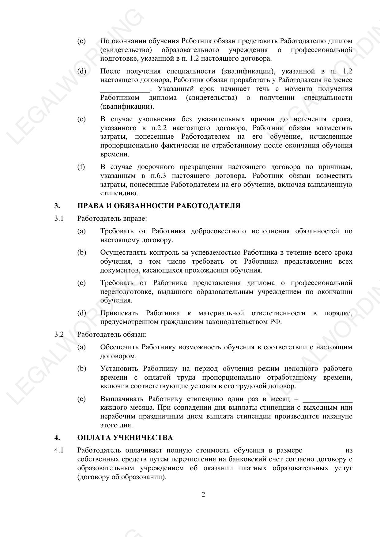 3. Rights and obligations of the Employer - the rights of the Employer, including monitoring the academic performance of the Employee, and responsibilities, for example, providing training opportunities and paying scholarships.