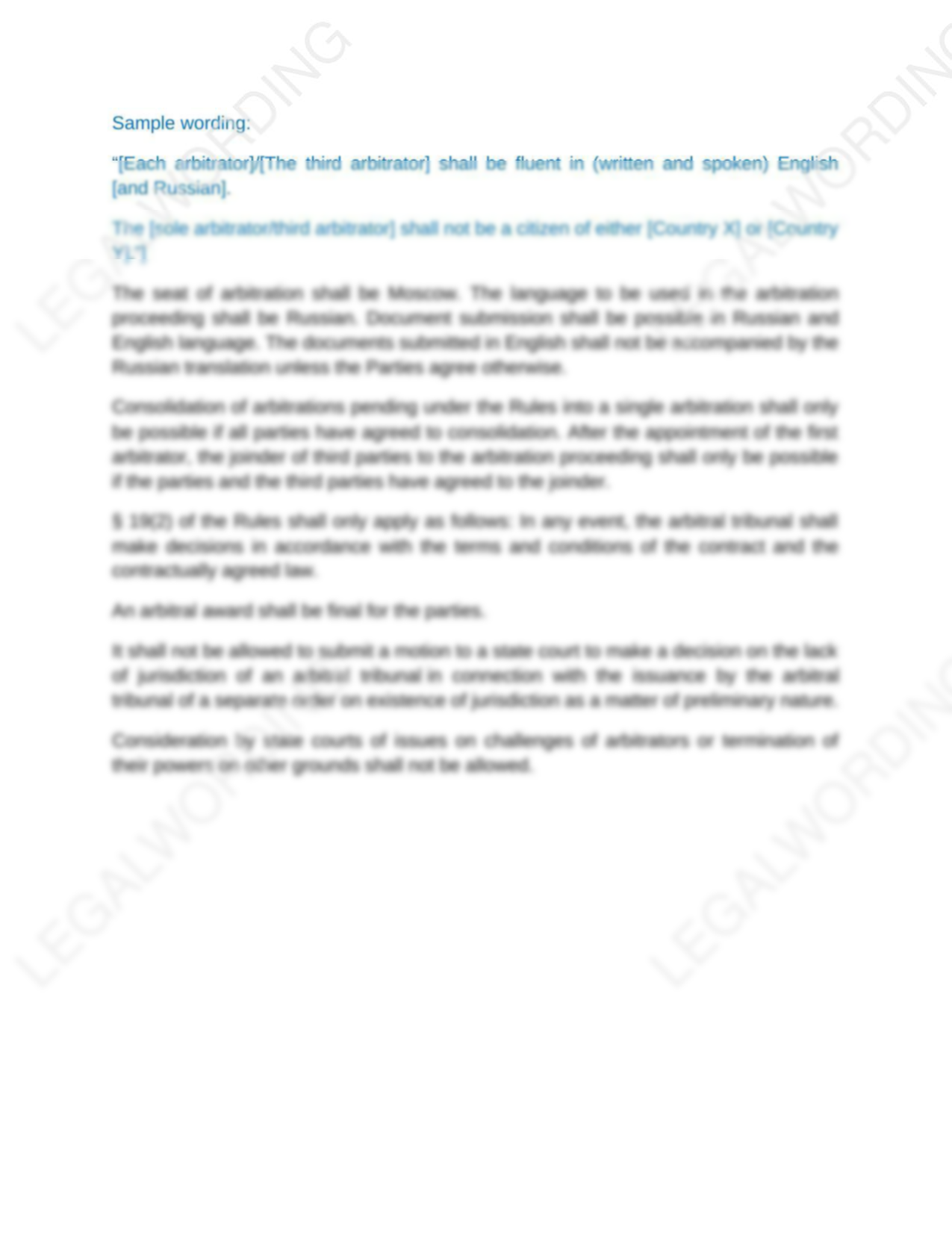 The ICAC arbitration clause may also contain additional provisions regarding the arbitration procedure, the place of arbitration, the language of the arbitration and other important aspects, allowing the parties to agree in advance on all necessary details and minimize the risks of the process