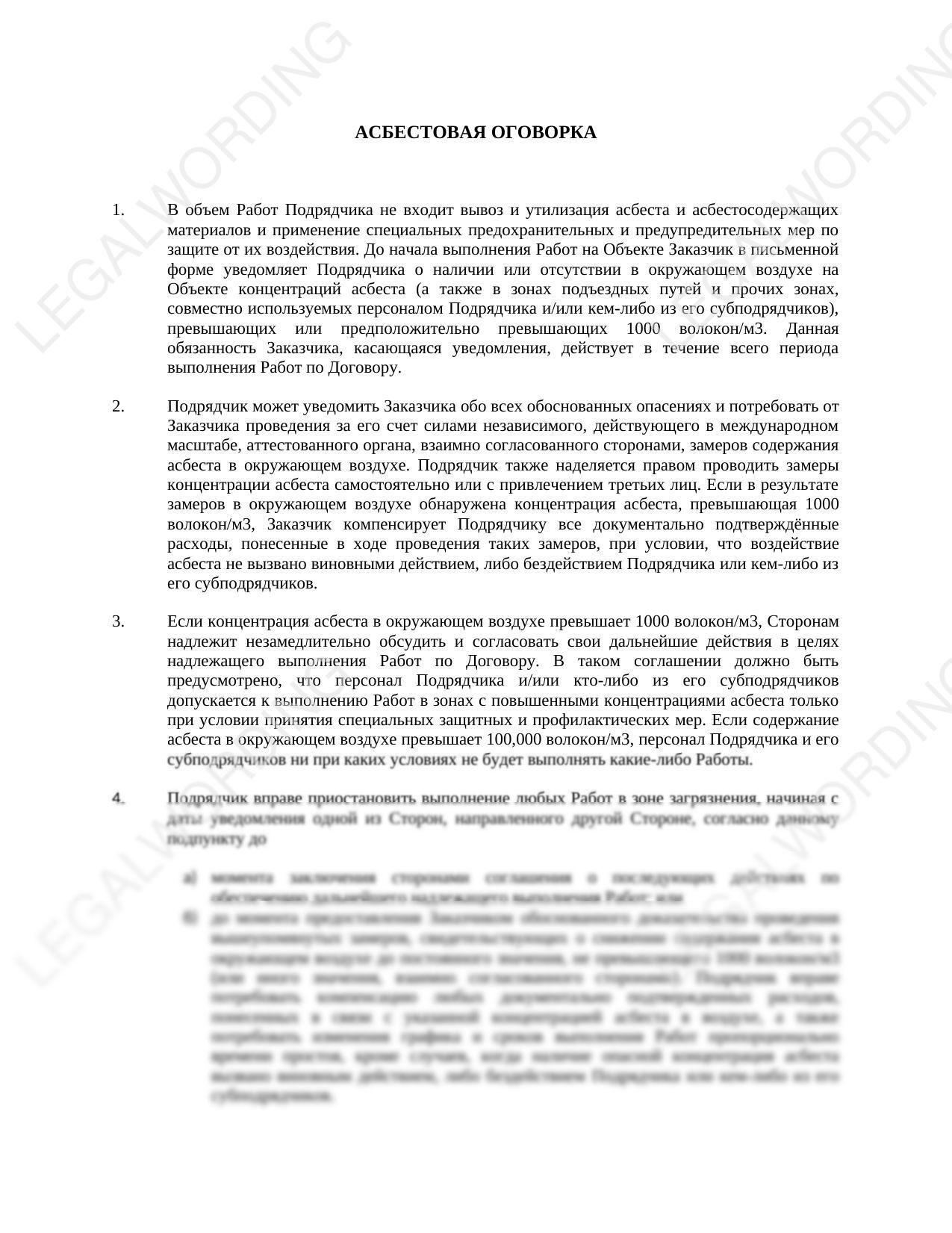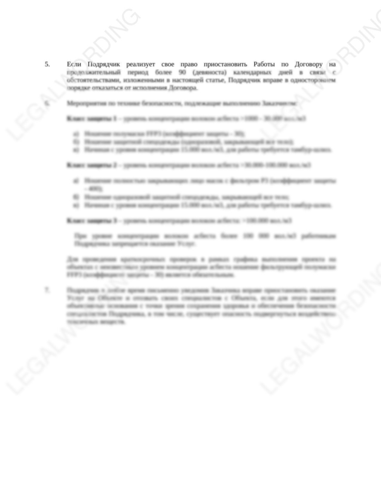 At certain levels of asbestos concentration, the customer is obliged to provide the contractor's employees with personal protective equipment (PPE) corresponding to a certain hazard class, depending on the degree of asbestos concentration.