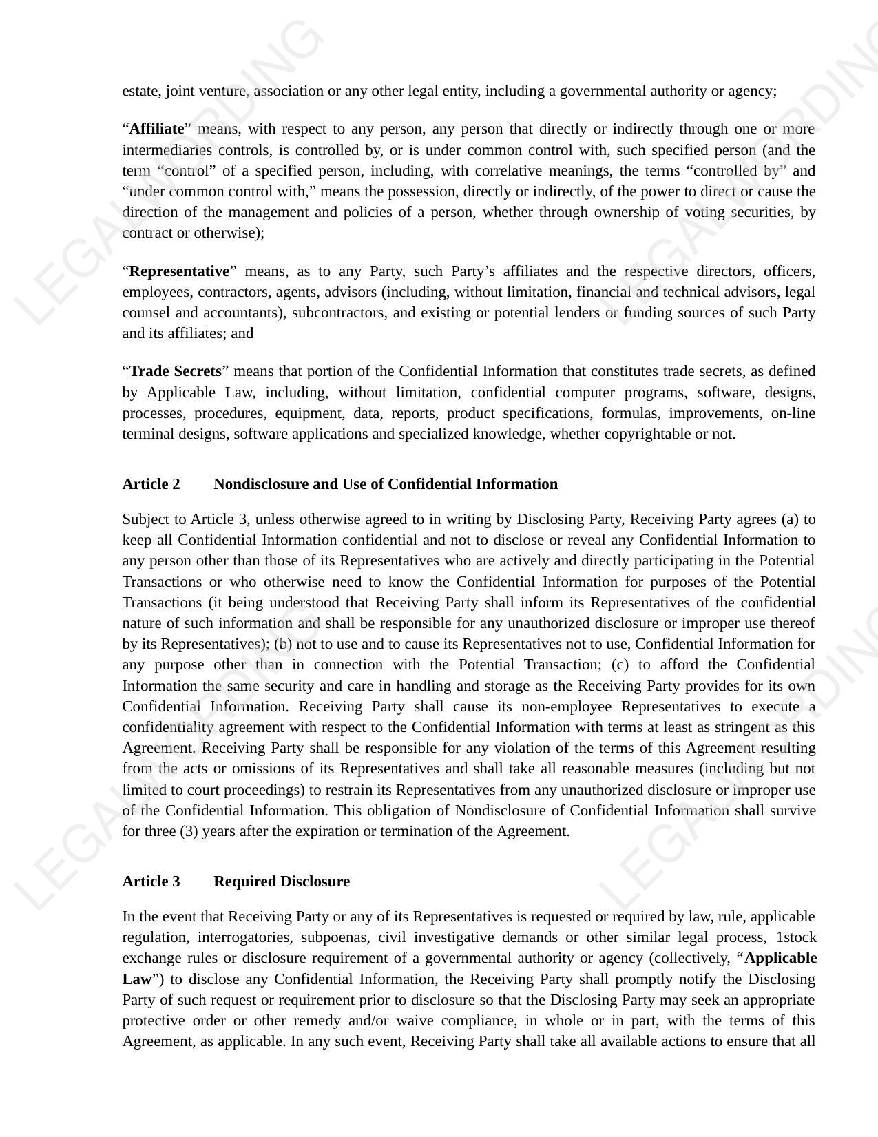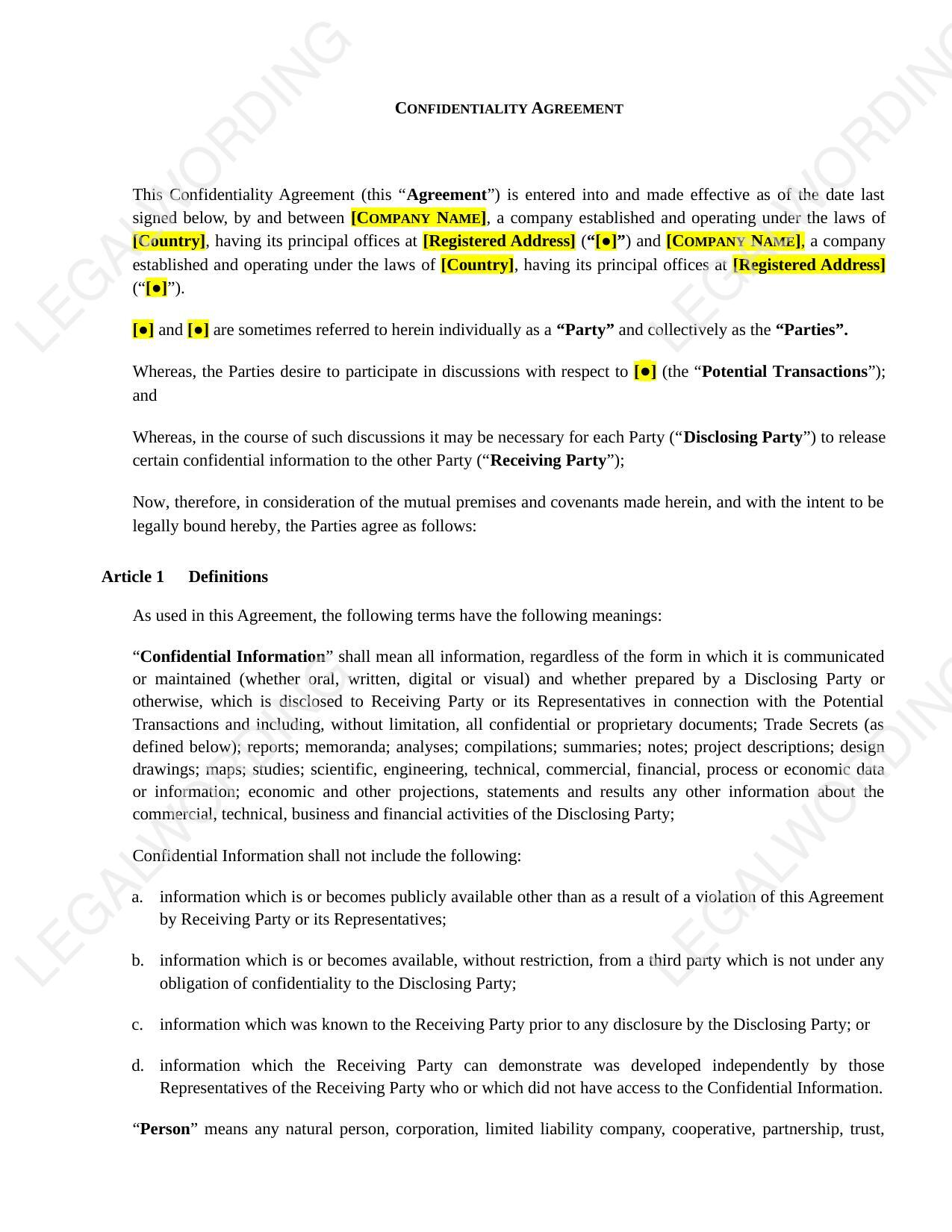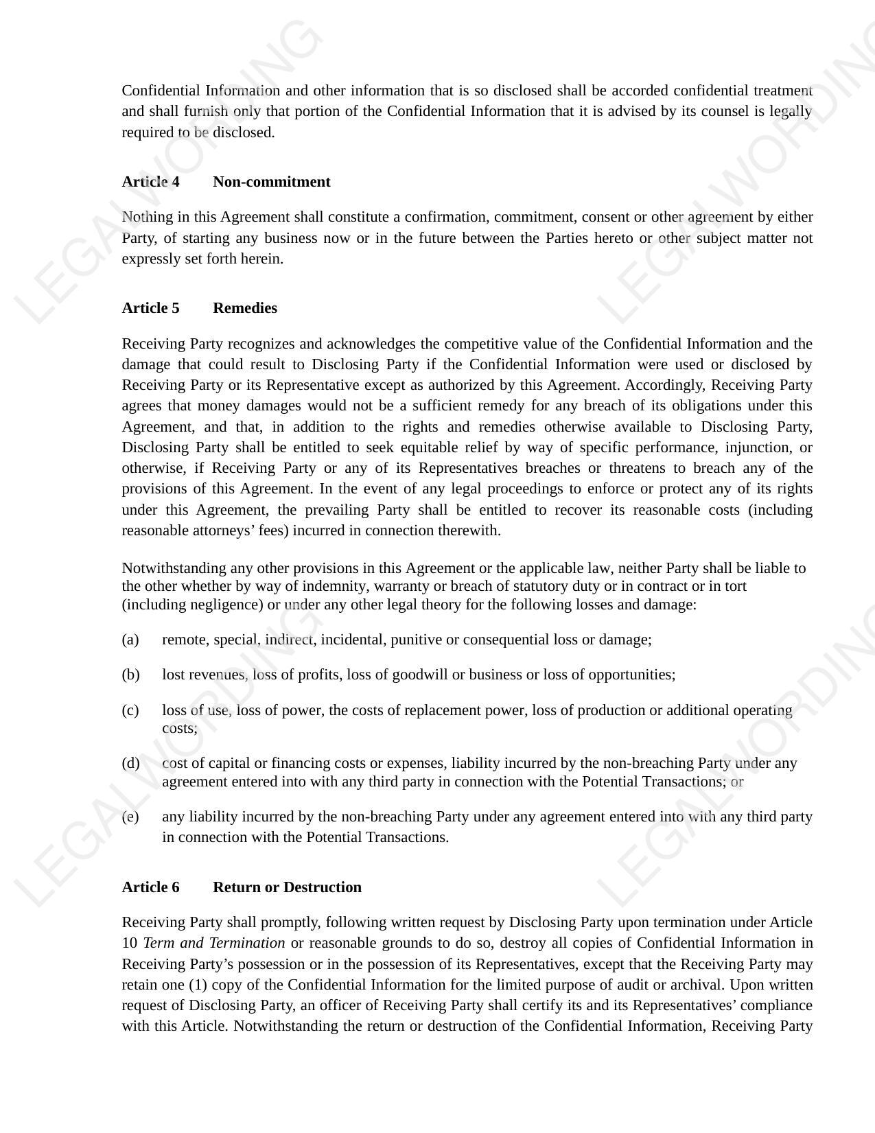 - Mutual obligations - both parties have equal obligations not to disclose confidential information