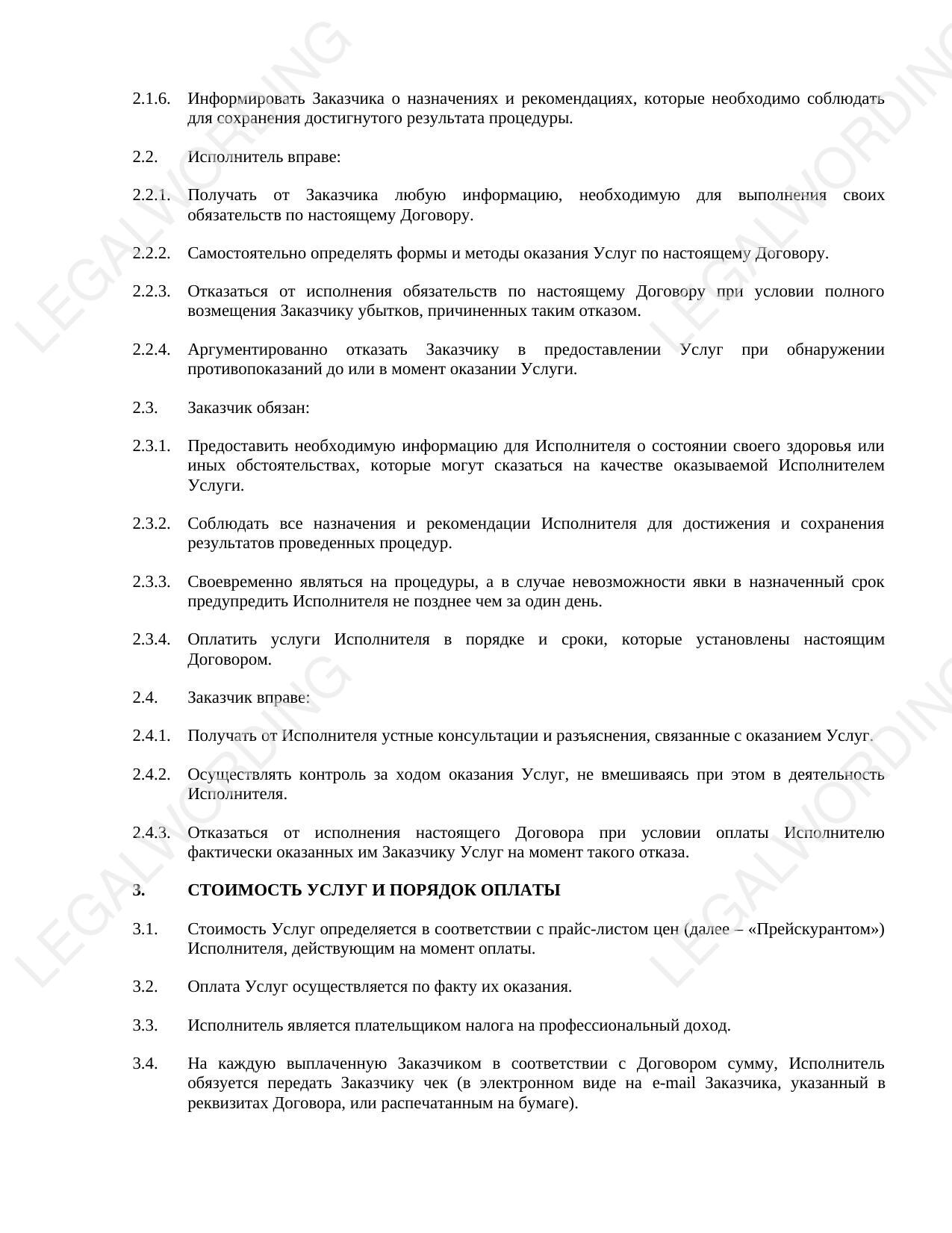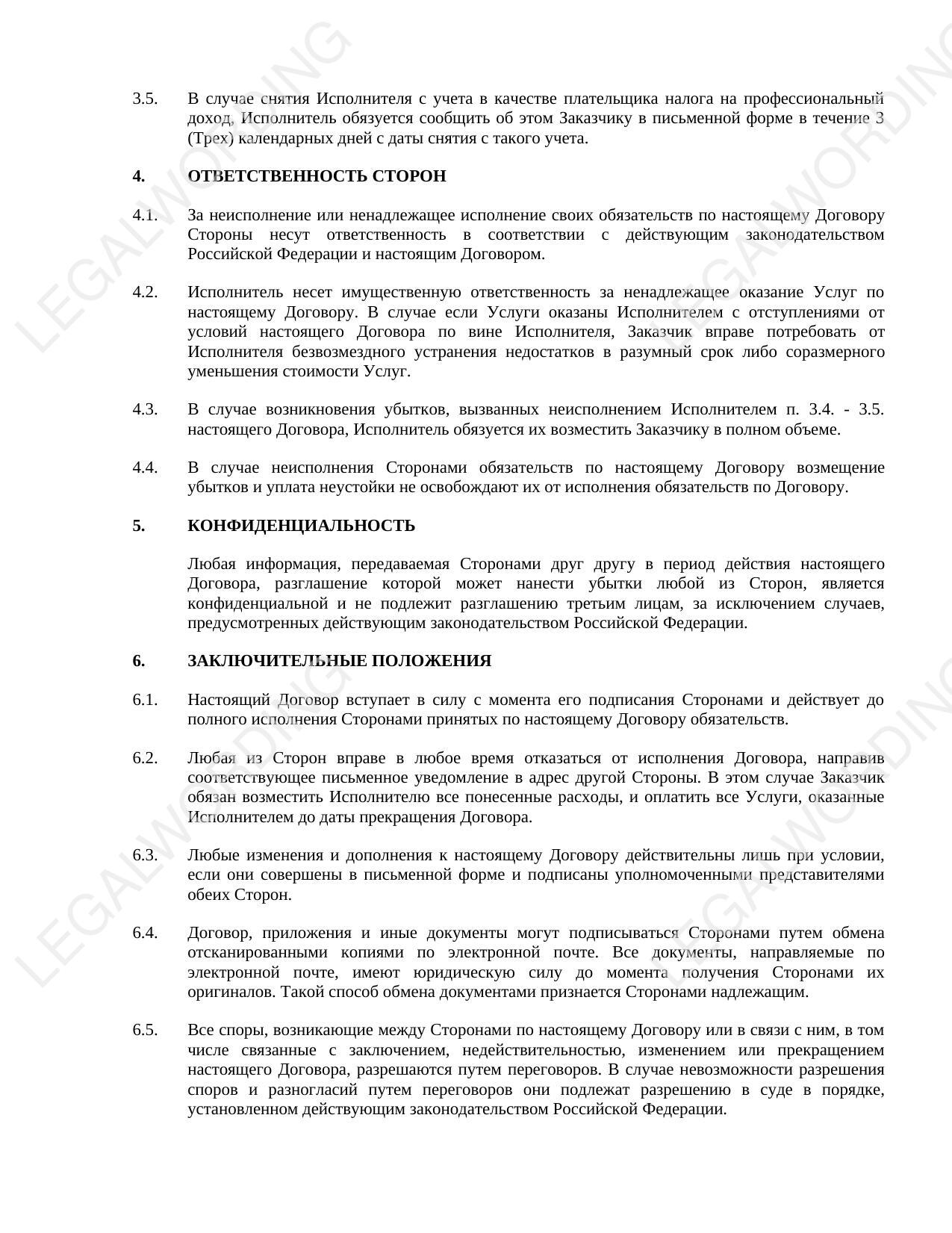 Template of the agreement on the provision of hairdressing services between a self-employed person and a legal entity. The document details the terms and conditions of services, the rights and obligations of the parties, the cost and payment procedure, liability, confidentiality and other provisions.