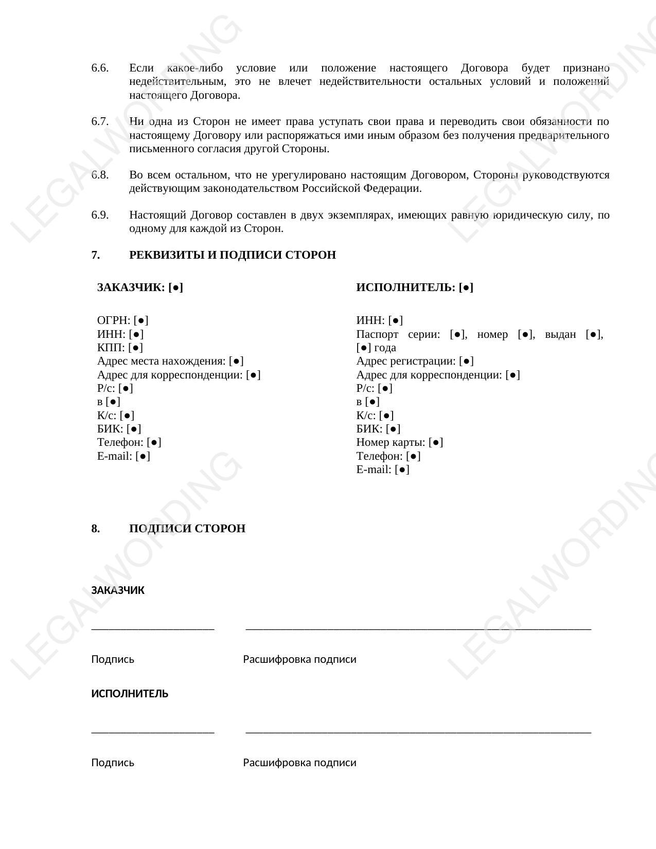 The contract details the order of interaction between the parties, including standards of service provision, financial conditions and conflict resolution mechanisms.