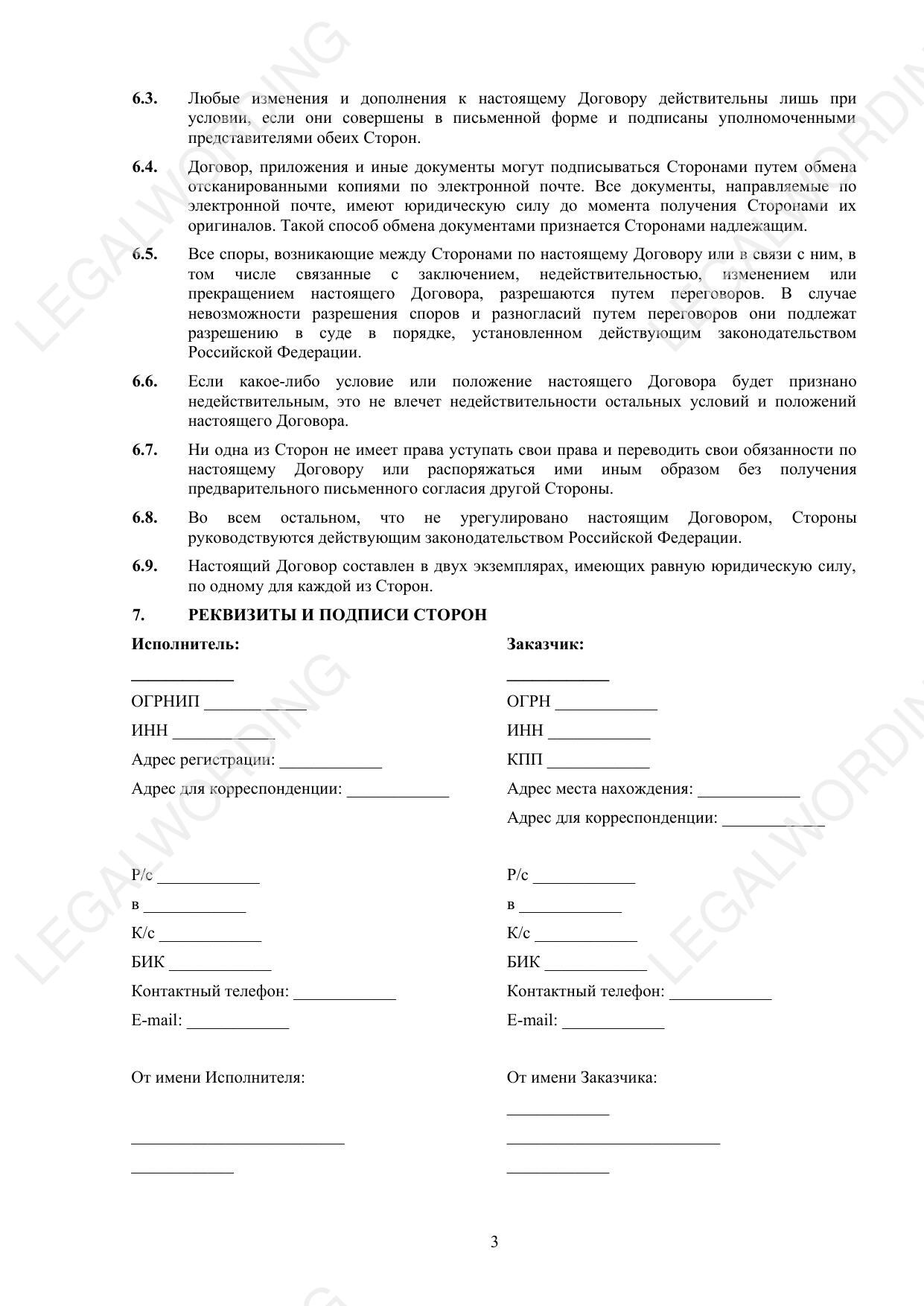 6. Final provisions - terms of validity and amendments to the agreement, dispute resolution procedure.
