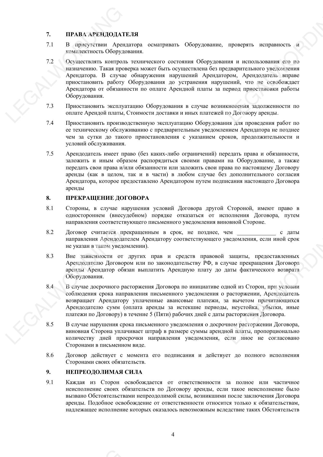 Transfer and return of equipment - the procedure and conditions for the transfer of equipment to the lessee and its return to the lessor, recording the condition of the equipment.