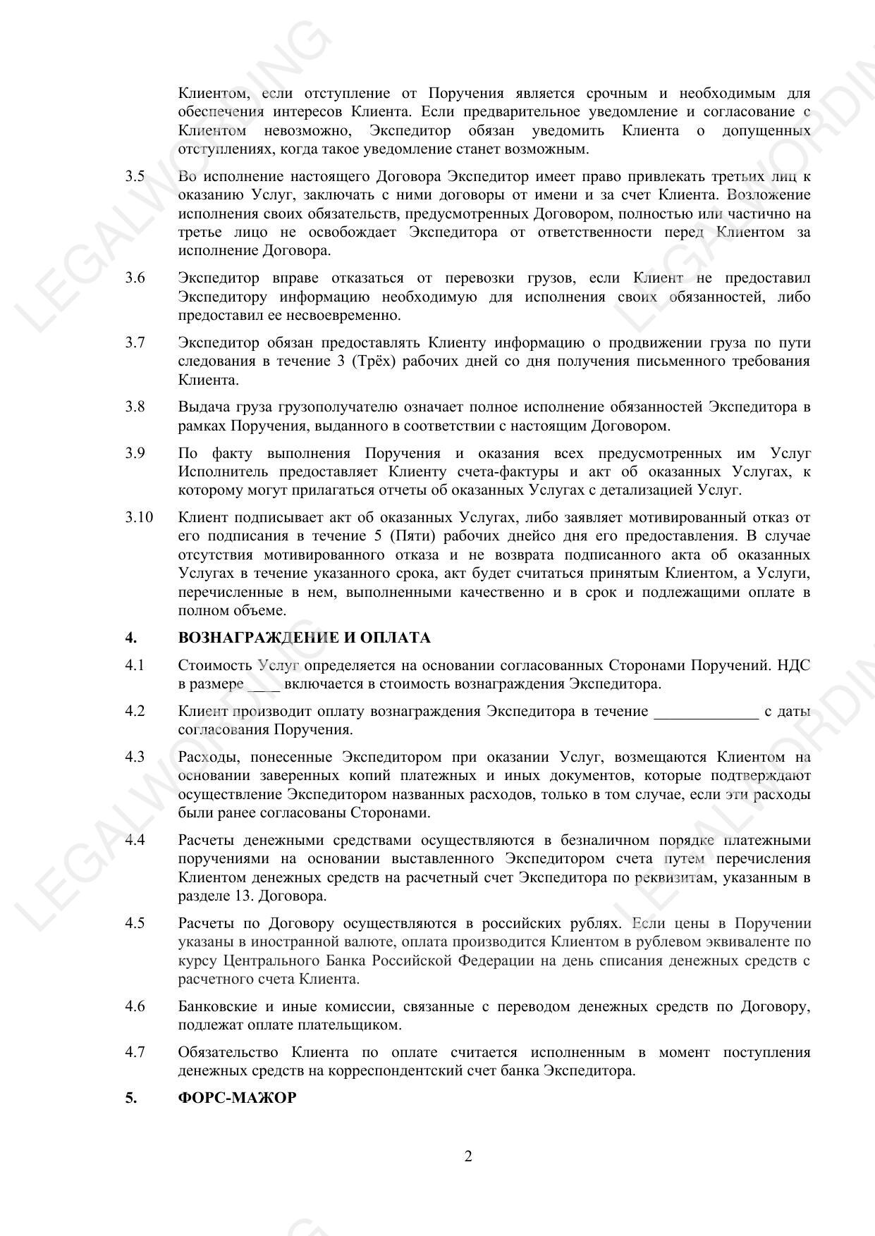 1. The subject of the contract - the Forwarder undertakes, for remuneration and on behalf of the Client, to organize the transportation of goods on the territory of the Russian Federation.