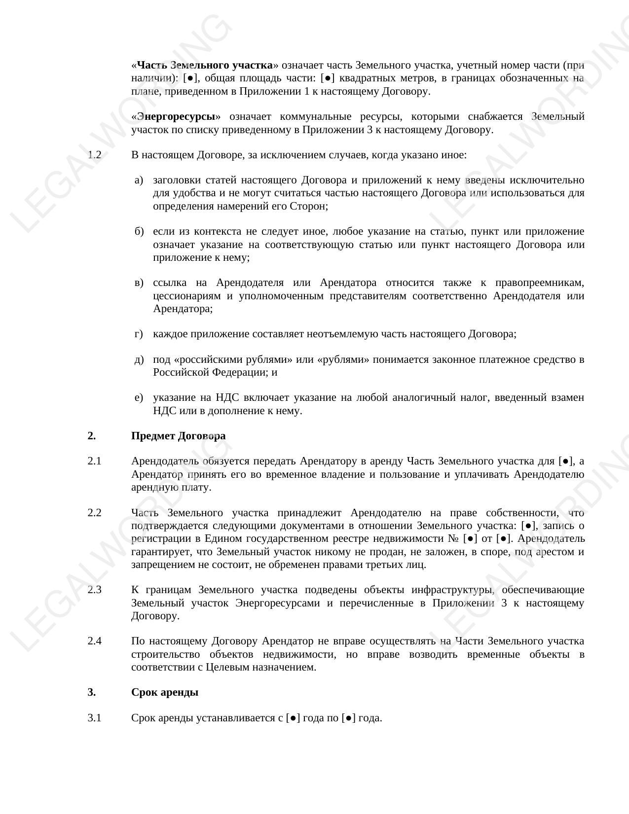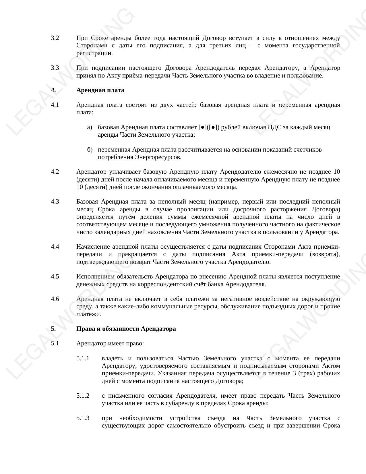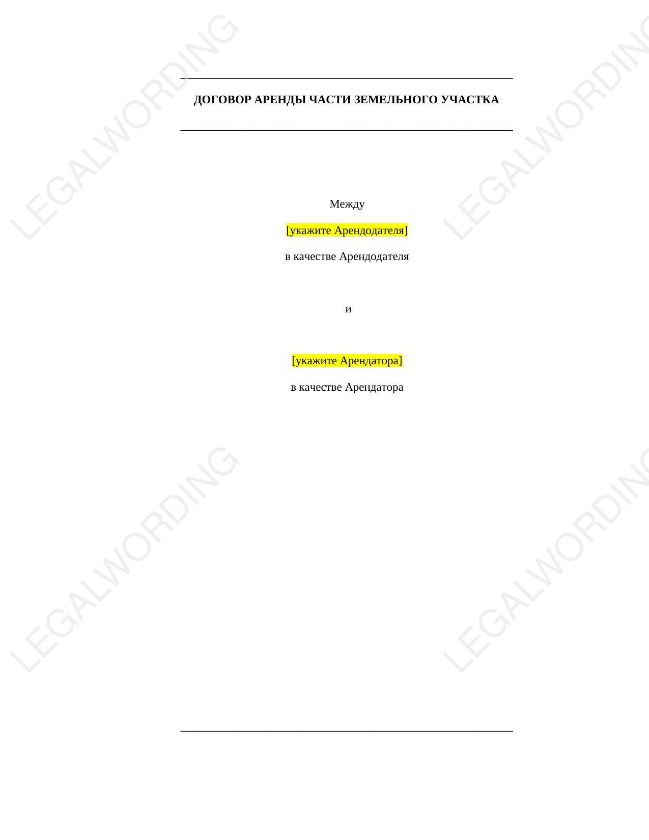 The peculiarity of this template is the object of the lease, which is a part of the land plot.