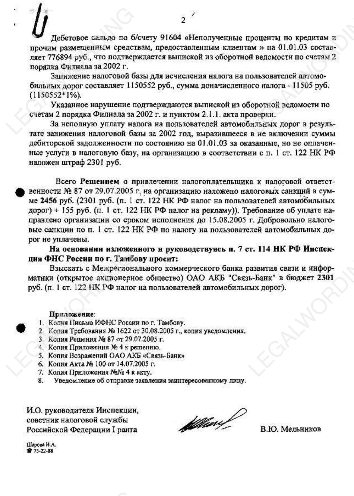 In this case, the reason for the termination of the proceedings is the decision of the Arbitration Court of the Tambov region dated 19.10.2025, by which the court declared illegal the Decision of the Inspectorate of the Federal Tax Service of Russia for Tambov dated 29.07.2025 No. 87, regarding bringing to tax liability for incomplete payment of tax on road users for 2002 in the form of additional tax on road users for 2002 in the amount of 11,505 rubles, the imposition of a fine in the amount of 2,301 rubles and the collection of penalties for late payment of tax in the amount of 5,071 rubles.
