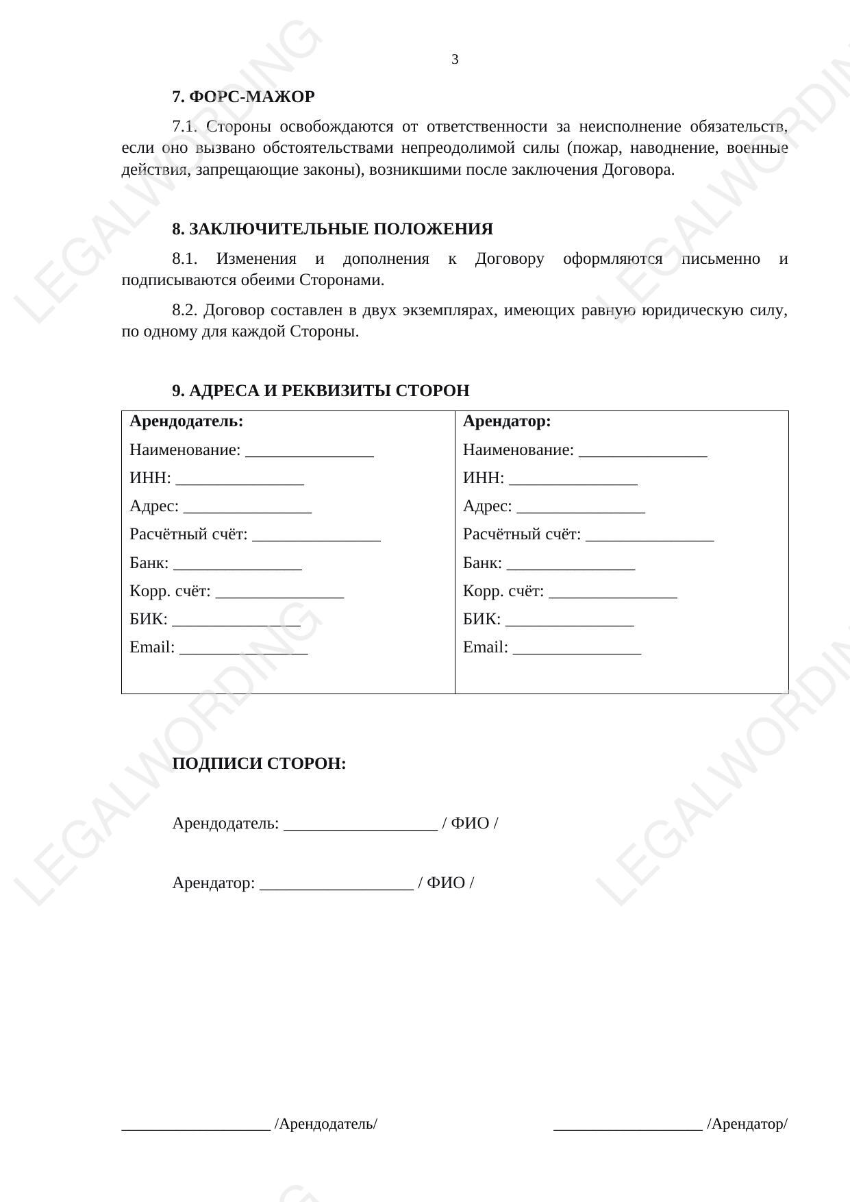This package of documents complies with the Civil Code of the Russian Federation and is ready to be signed once the following blanks are filled in: the parties' details and the property description.