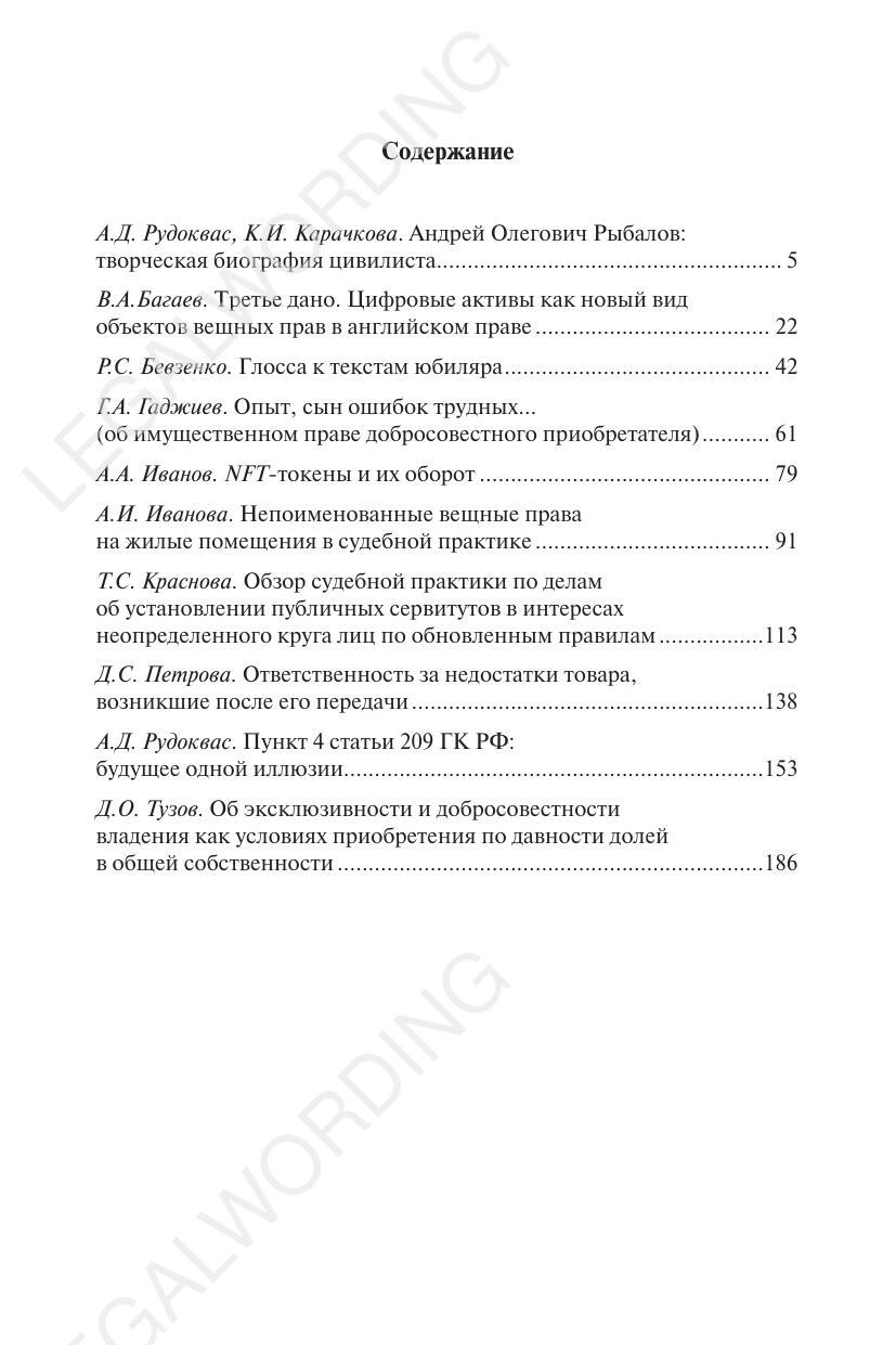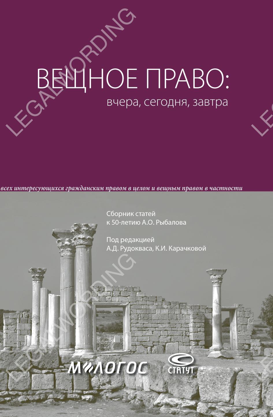 The authors, united by the idea of congratulating the jubilee, have prepared this collection for all those interested in civil law in general and property law in particular.