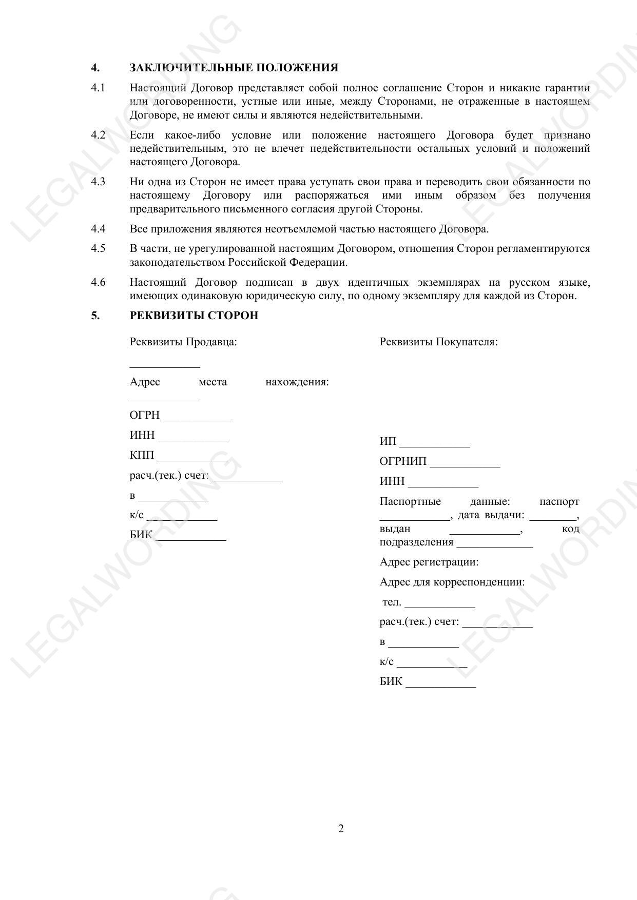 This template includes all the essential conditions for a legitimate and transparent transaction, ensuring the rights of both parties and regulating the order of interaction