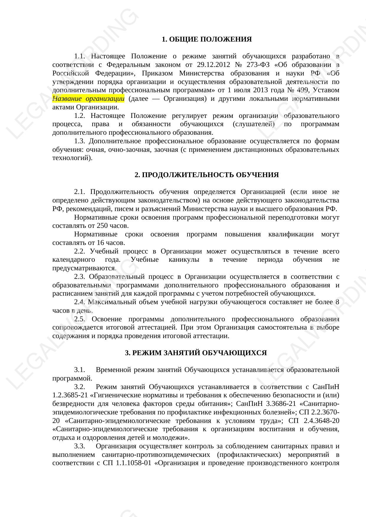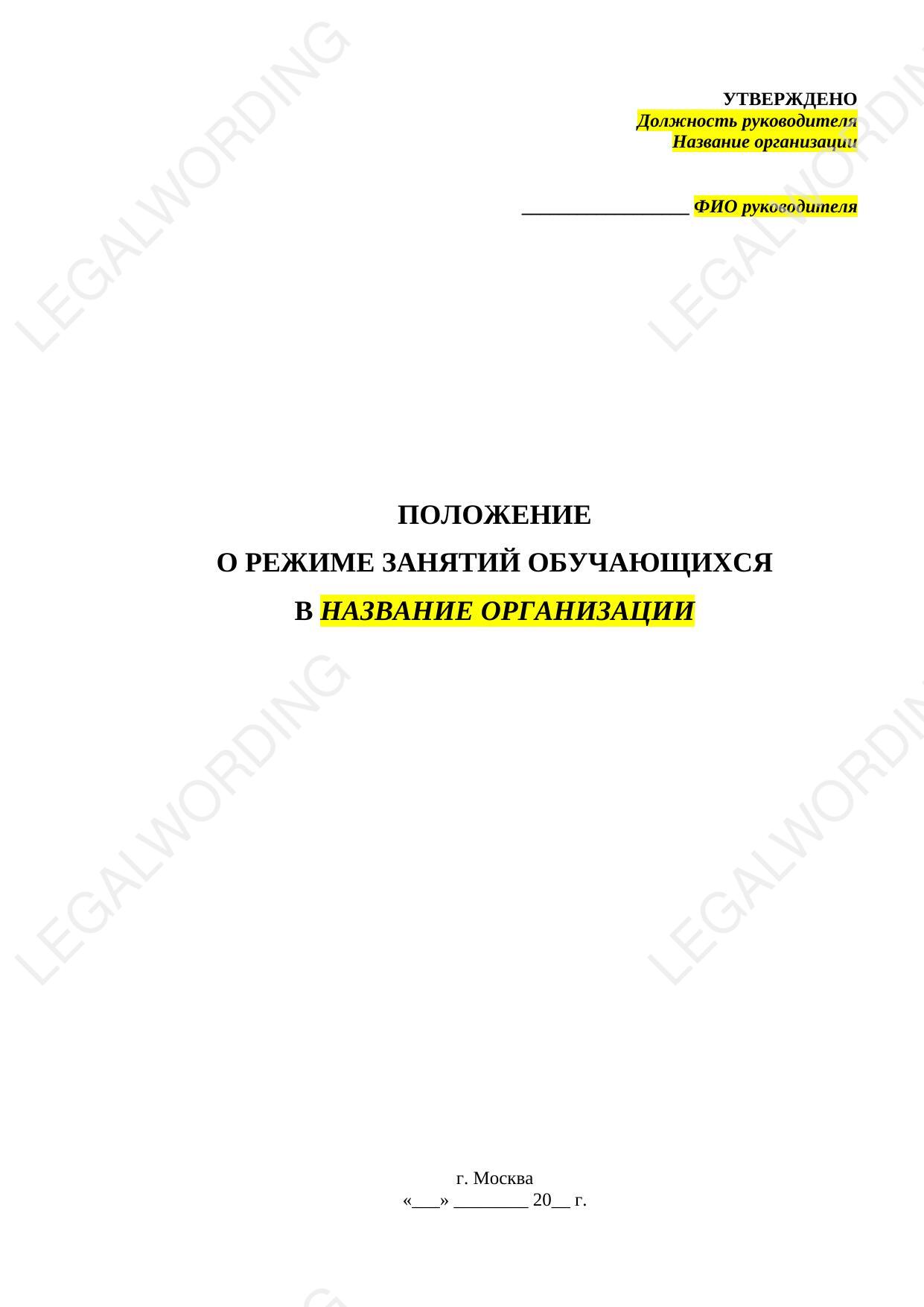 The regulation on the schedule of classes for students sets the duration and time schedule of classes in an educational organization. The regulation is provided with an approval order.