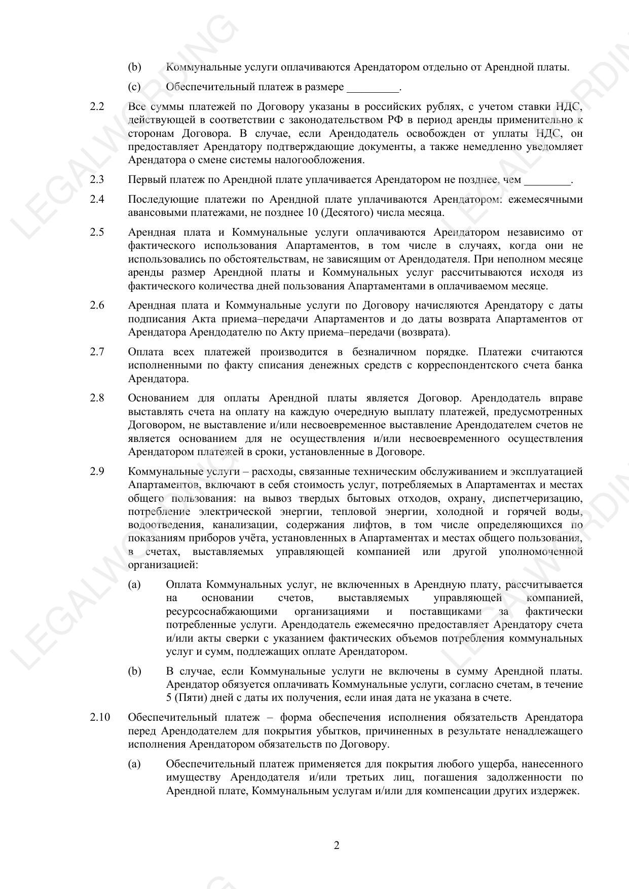 The template is intended for use by individuals and helps to settle all the nuances of apartment rentals, providing the parties with contractual obligations and transparency of all conditions