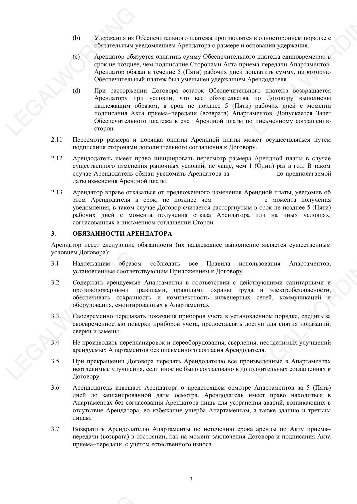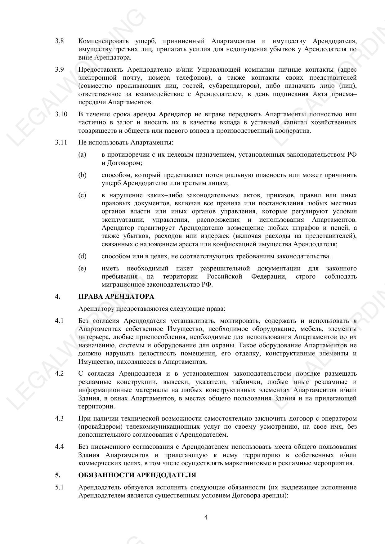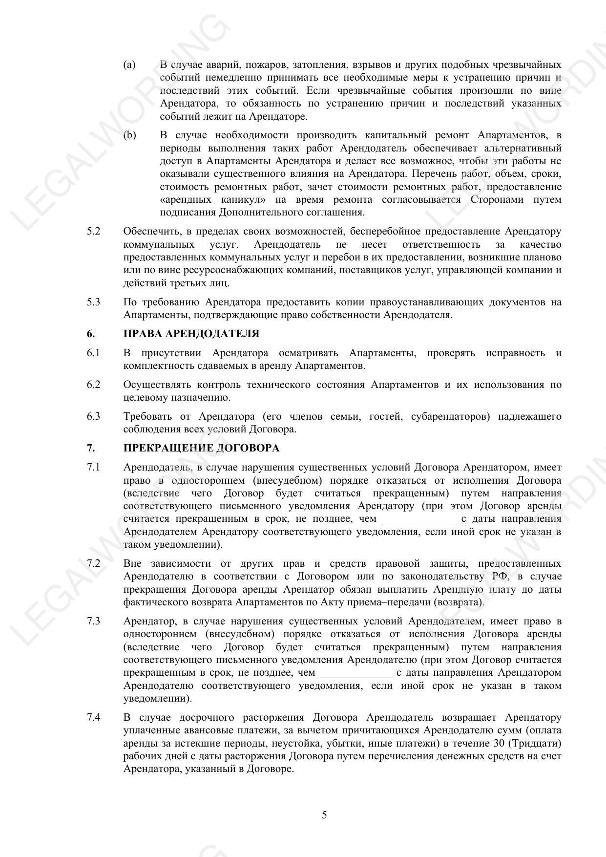 The agreement contains provisions on liability, the procedure for amendments and additions to the agreement, as well as appendices such as an inventory of property and rules for the use of apartments.