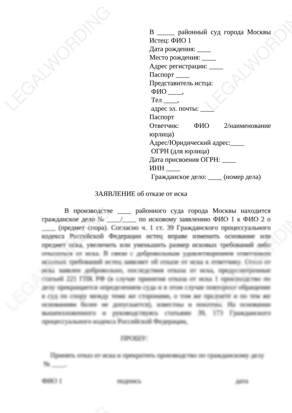 The statement of refusal of the claim is submitted by the plaintiff to the court, which accepted the claim for proceedings in the event of termination of the dispute with the defendant.