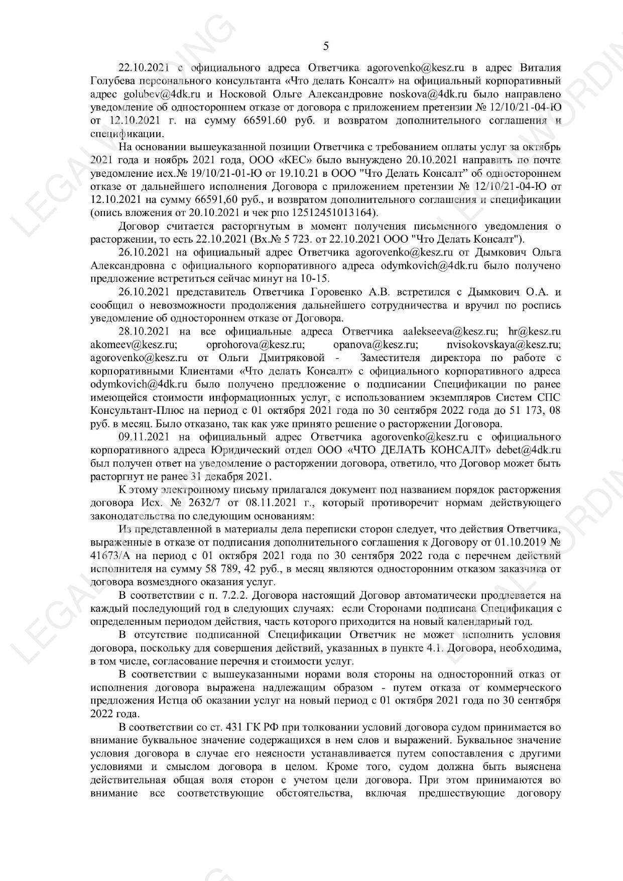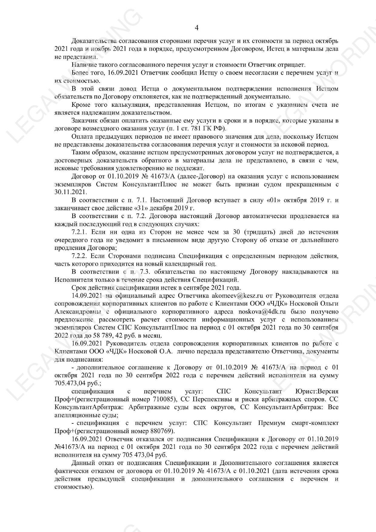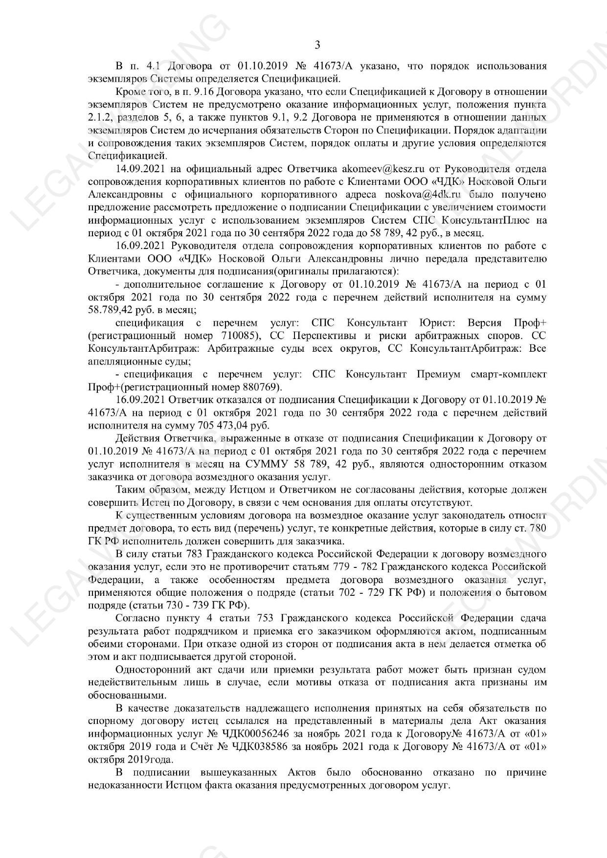 The contractor decided to increase the cost of services under the agreement using copies of the ConsultantPlus System for the period from 01.10.2021 to 30.09.2022 to 58789.42 rubles. The customer refused to sign the Specification with the list of contractor's services per month, which is a unilateral waiver of the contract. The Contractor considered that the Customer did not have the right to withdraw from the contract and filed a lawsuit in court. Case A40-277821/2021 was won https://kad.arbitr.ru/Card/c8890c1a-7b41-4430-97e2-592d8acfcc68
