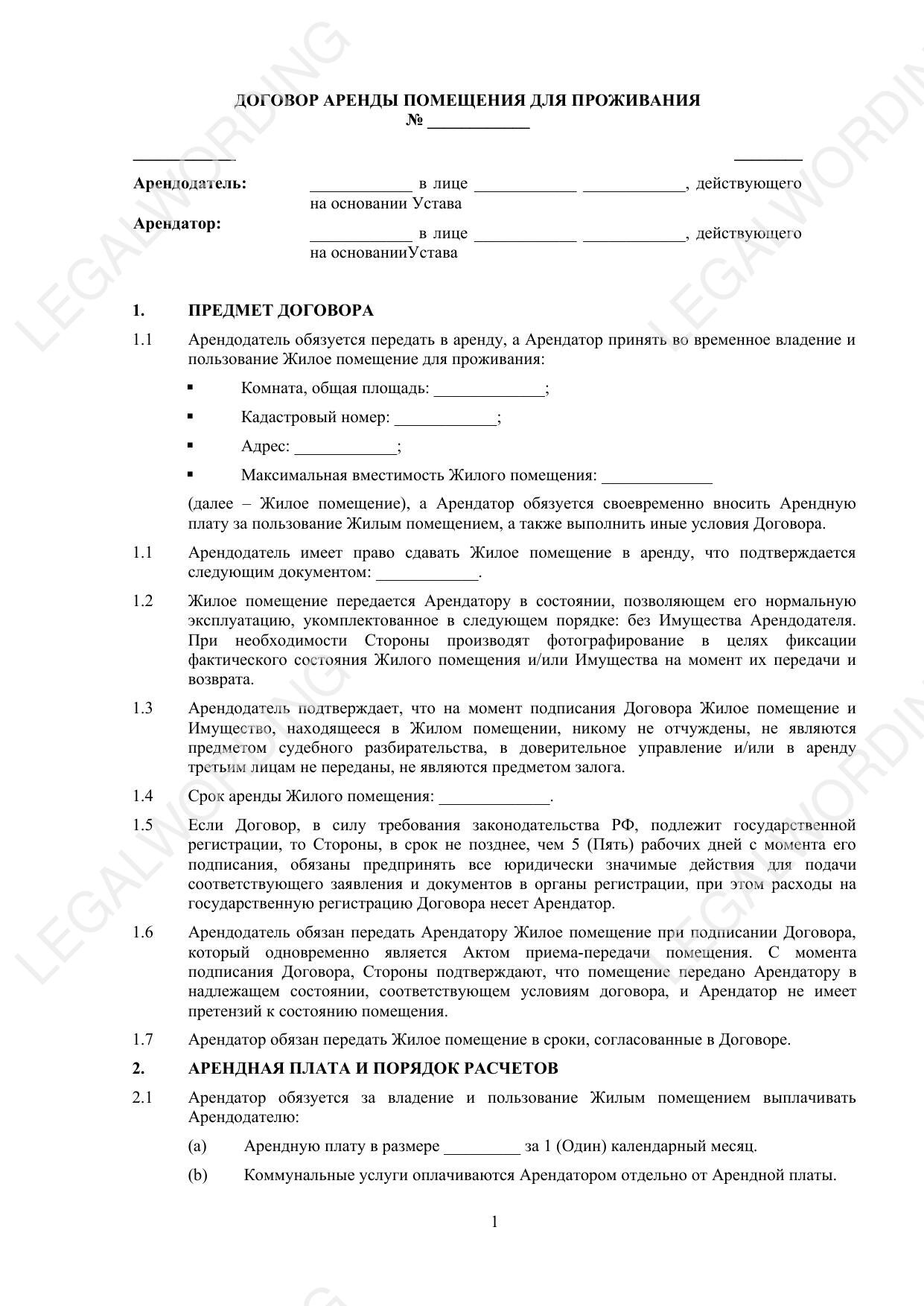 | Тип договора | Единоразовый |