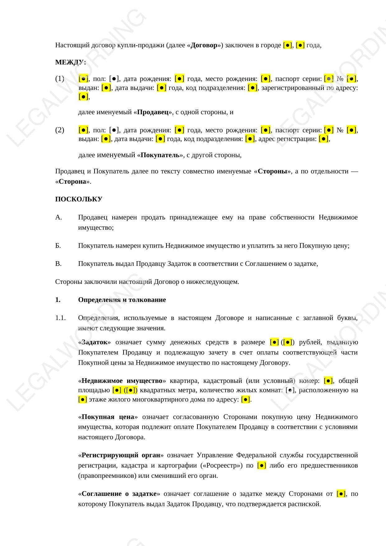 Выданный покупателем задаток в обеспечение заключения договора купли-продажи квартиры зачитывается в счет оплаты покупной цены квартиры.