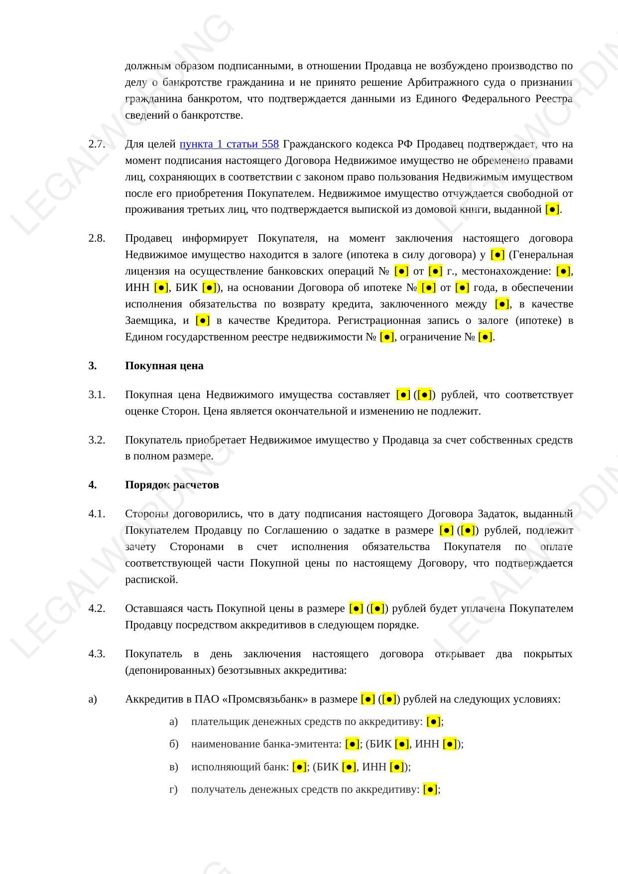(ii) аккредитив 2 открывается продавцу после выплаты продавцом кредита банку и снятия обременения в виде ипотеки в определенный договором срок.