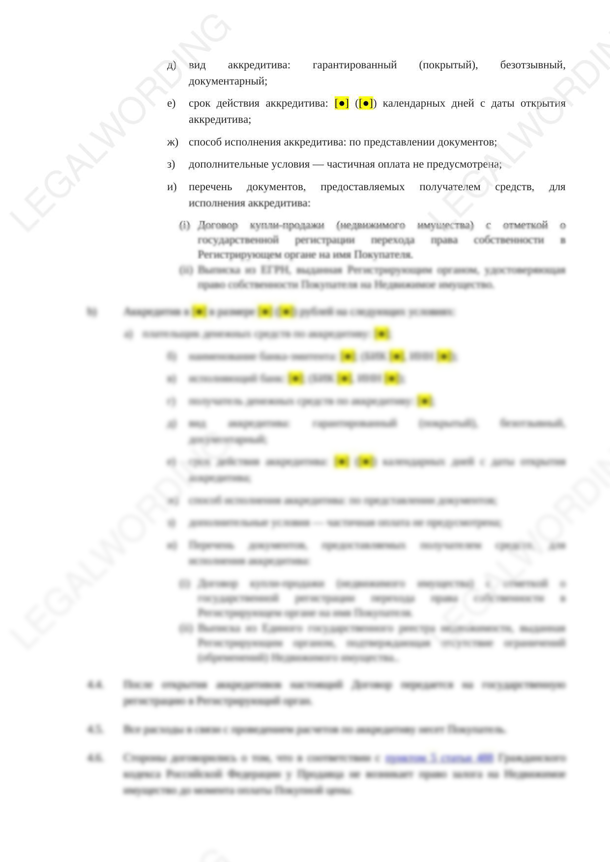 (i) аккредитив 1 открывается продавцу после регистрации права собственности покупателя на квартиру;