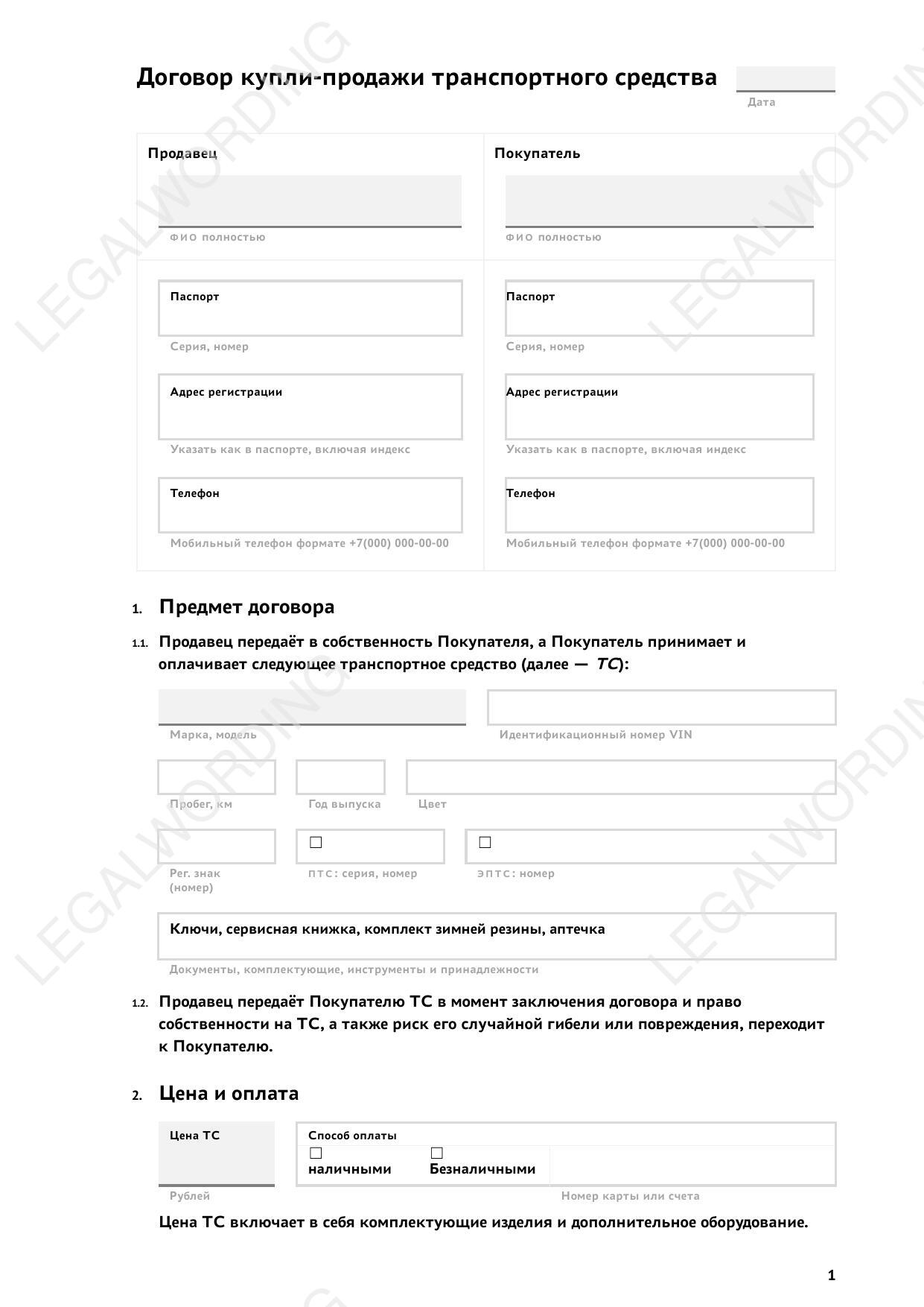Договор продажи транспортного средства в формате, оформленный с принципами Legal Design.