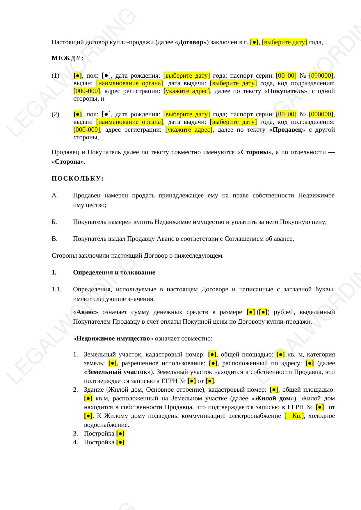 | Правовое регулирование | Статьи 549 - 558 Гражданского кодекса РФ |