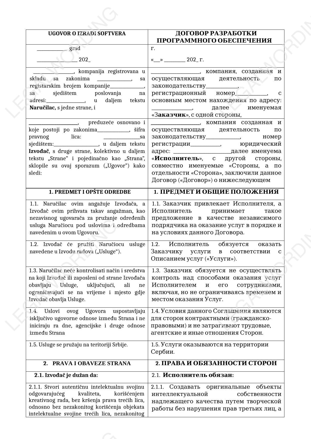 Шаблон договора на разработку программного обеспечения.