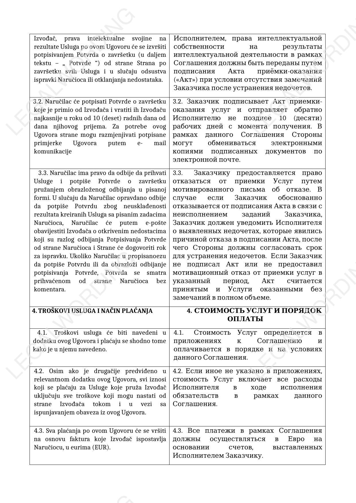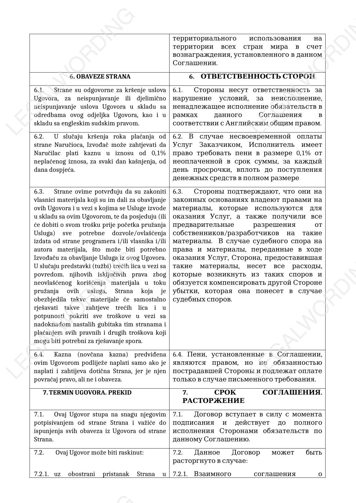Право - английское (нейтральное для сторон); судебная оговорка - арбитраж в Сербии.