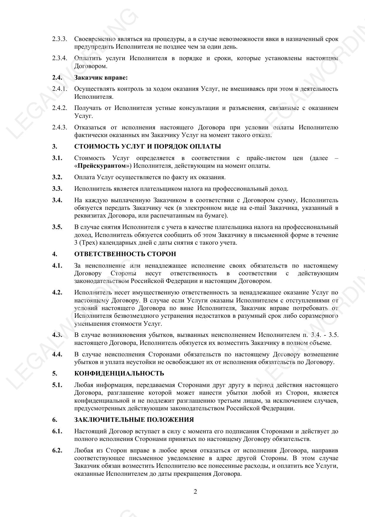 2. Права и обязанности сторон - требования к качеству услуг, информации об услугах и порядке взаимодействия.
