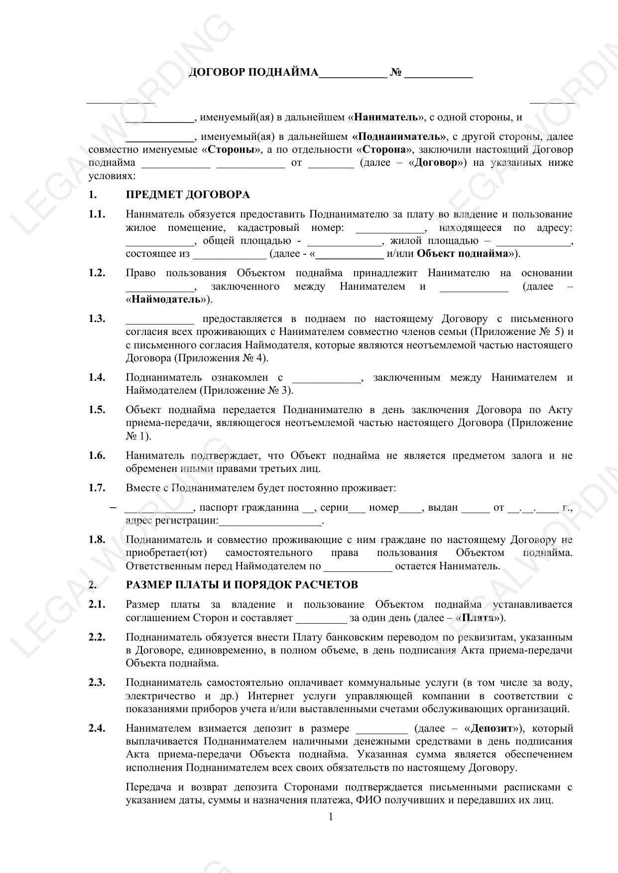 Договор поднайма жилого помещенияДоговор поднайма жилого помещенияДоговор поднайма жилого помещенияДоговор поднайма жилого помещенияДоговор поднайма жилого помещения