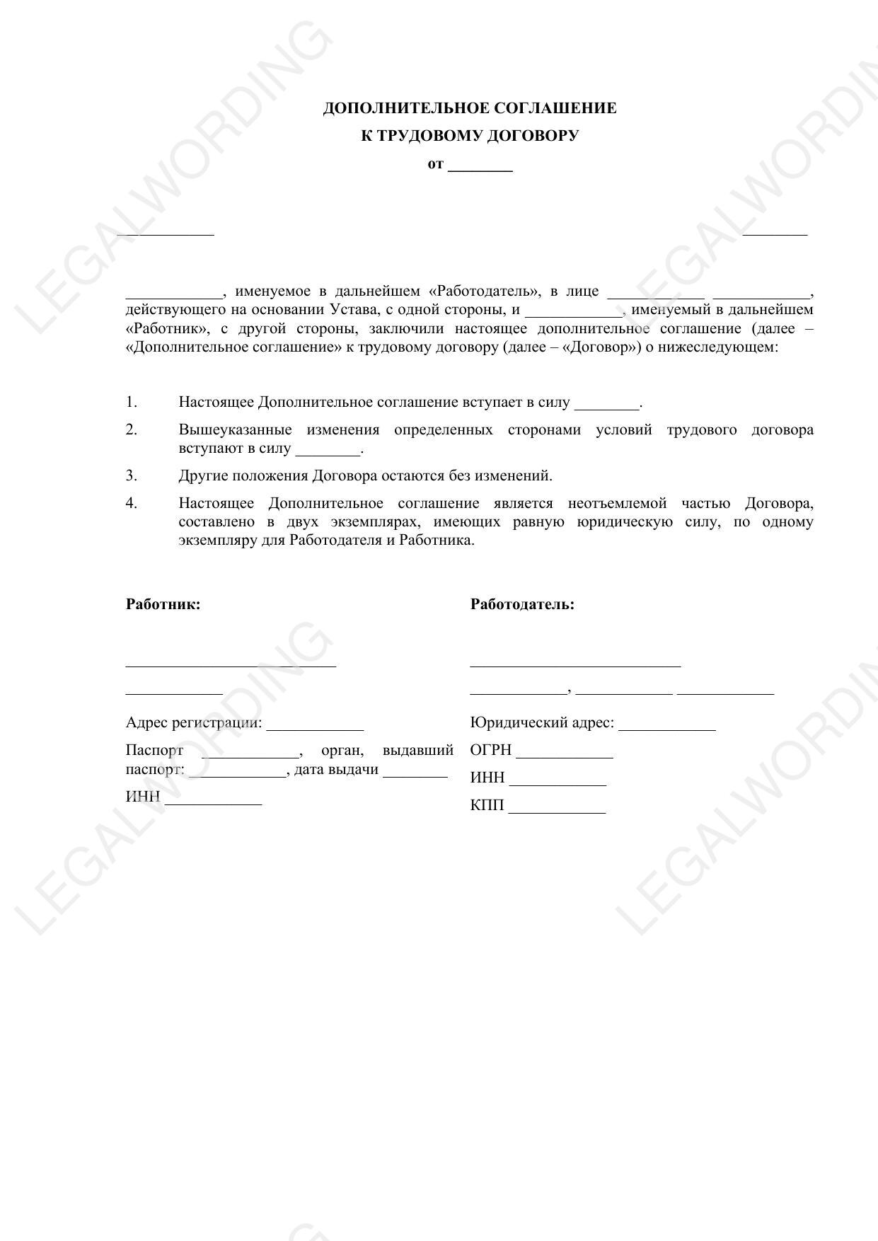 Дополнительное соглашение регулирует изменения в трудовом договоре, обеспечивает их официальное оформление.