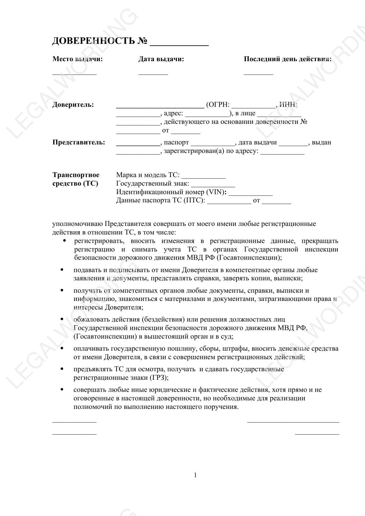 Шаблон доверенности на выполнение регистрационных действий с транспортным средством позволяет владельцу транспортного средства назначить представителя для выполнения различных регистрационных действий в органах Госавтоинспекции. Документ оформляется между доверителем (владельцем транспортного средства) и представителем.
