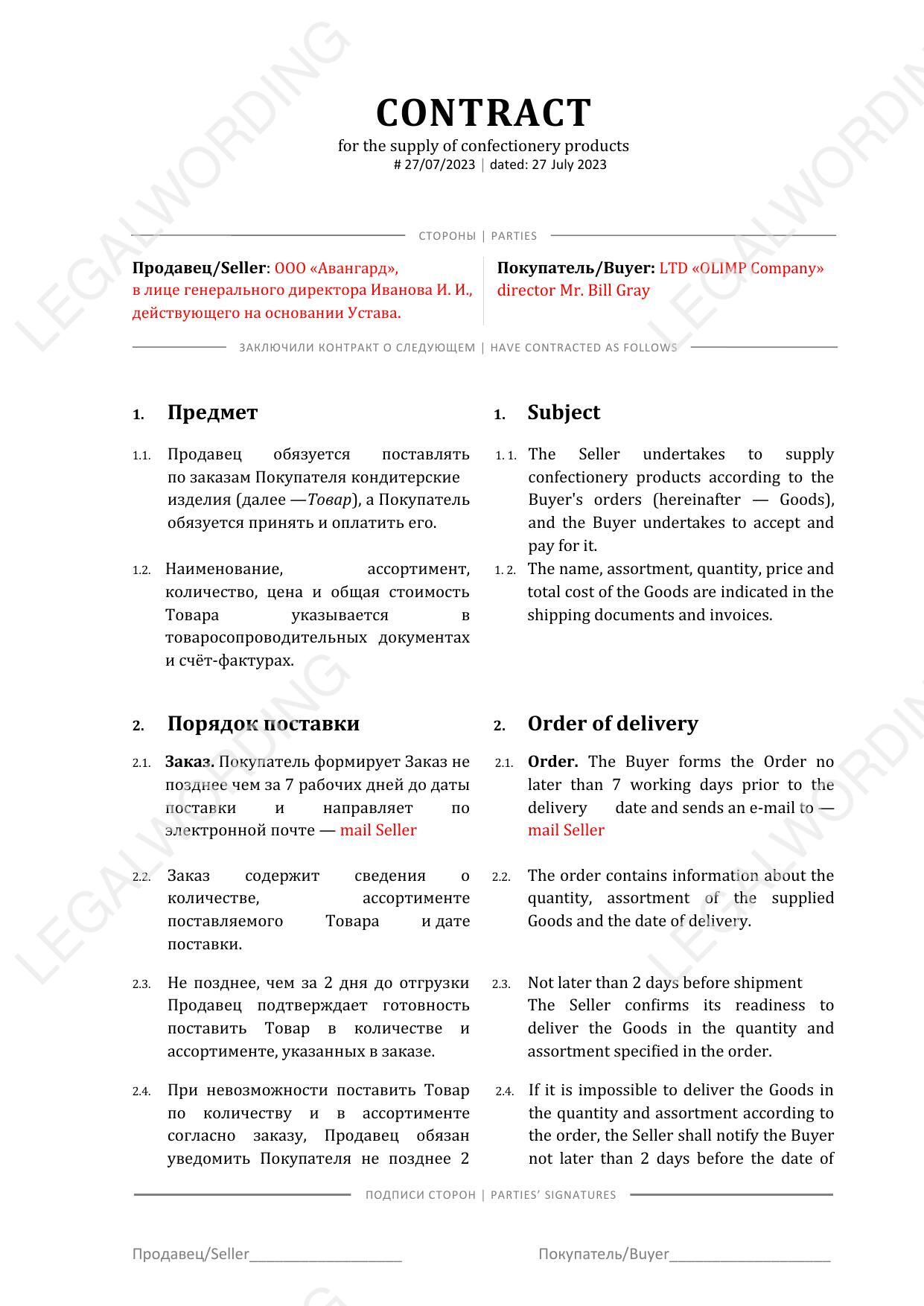 | Договор поставки | Сбалансирован |