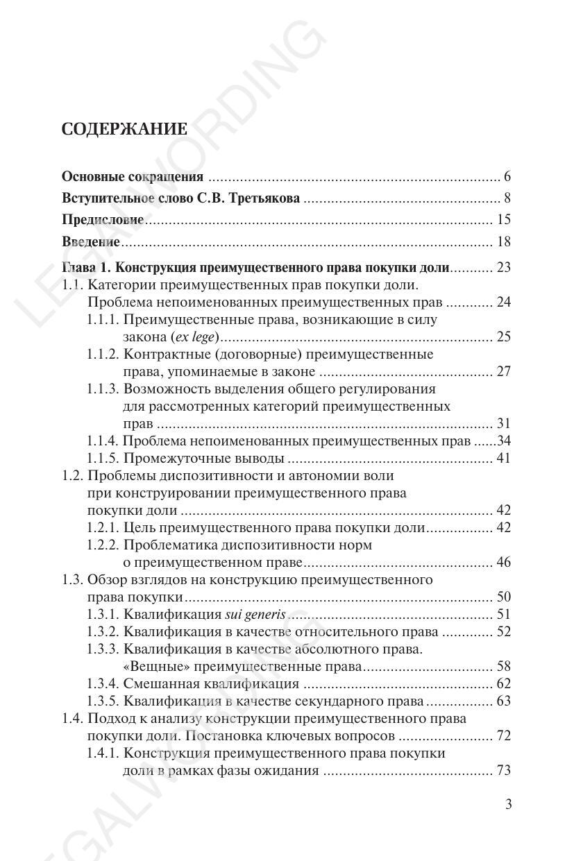 В работе широко используются как сугубо теоретические исследования, так и новейшая российская судебная практика по проблематике преимущественных прав, вследствие чего монография будет интересна как научным работникам, студентам и аспирантам, так и судьям или практикующим юристам.