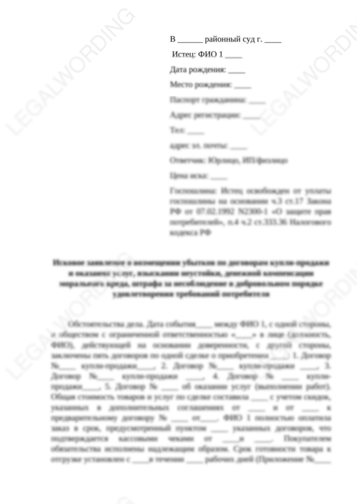 Исковое заявление о возмещении убытков, возмещении морального вреда, взыскание убытков подается истцом в суд в целях защиты своих прав