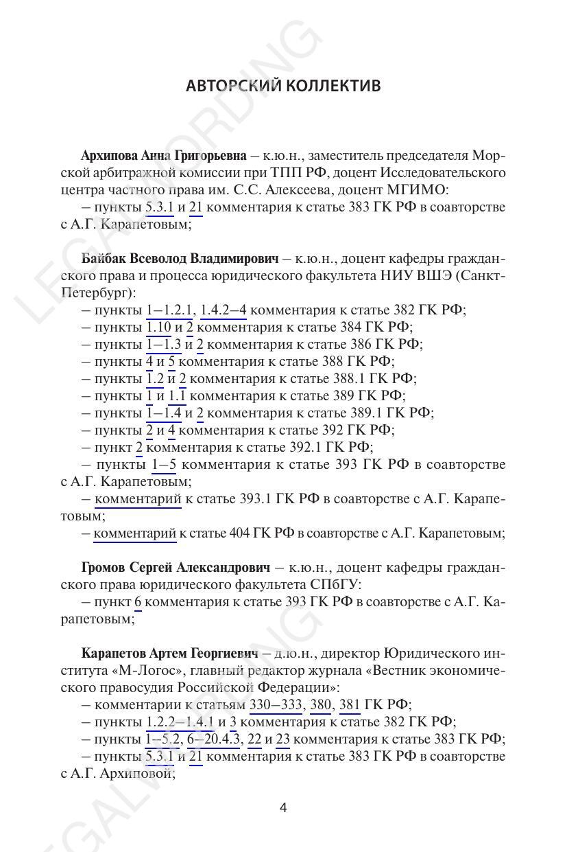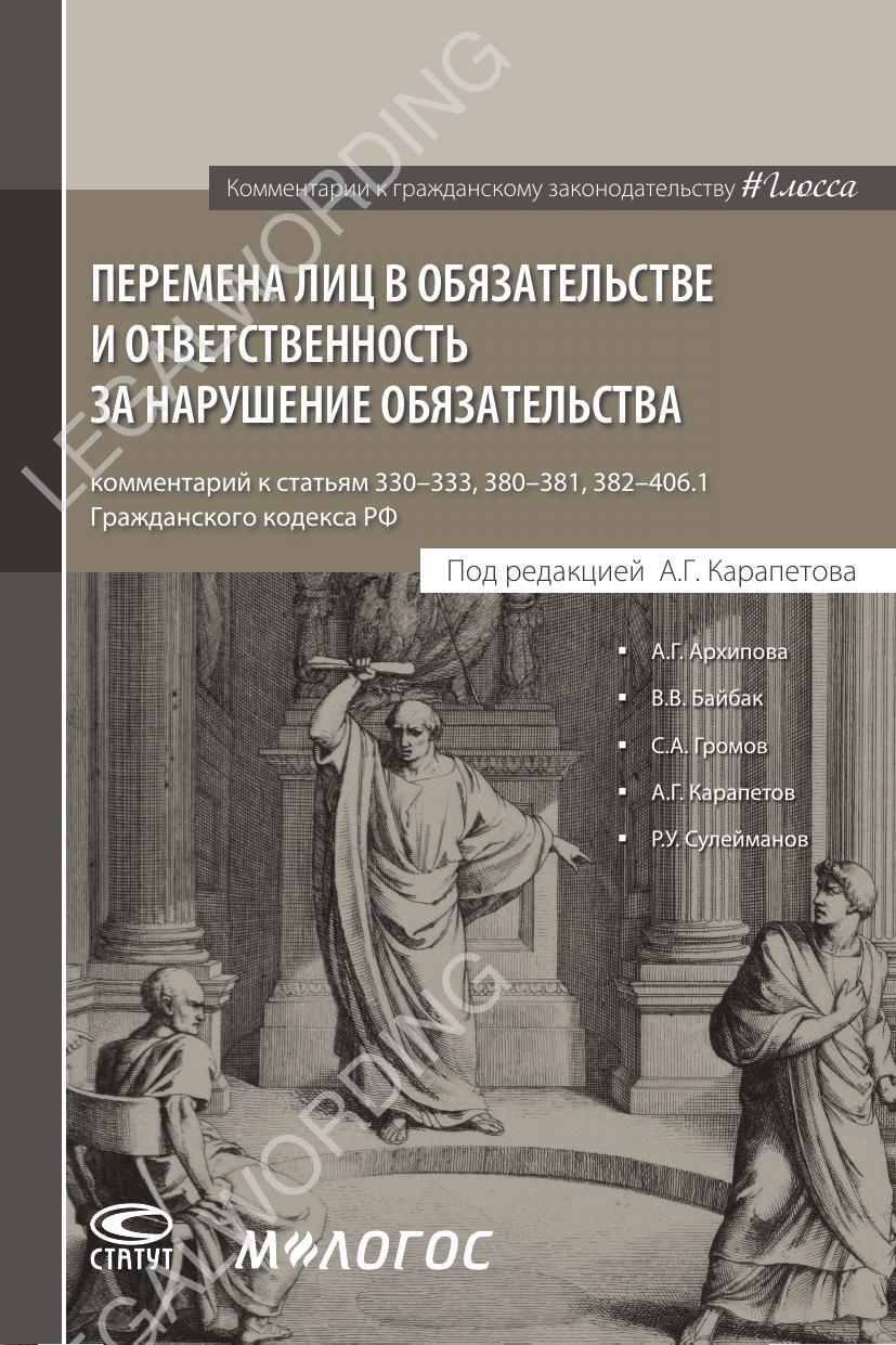 Настоящий комментарий написан с целью помочь юристам-практикам, судьям, ученым и студентам, интересующимся гражданским правом, сориентироваться в проблемных вопросах применения положений гл. 24 ГК РФ о перемене лиц в обязательстве (ст. 382 –392.3), положений гл. 25 ГК РФ об ответственности за нарушение обязательства, а также ст. 330 – 333, 380 и 381 ГК РФ о неустойке и задатке.