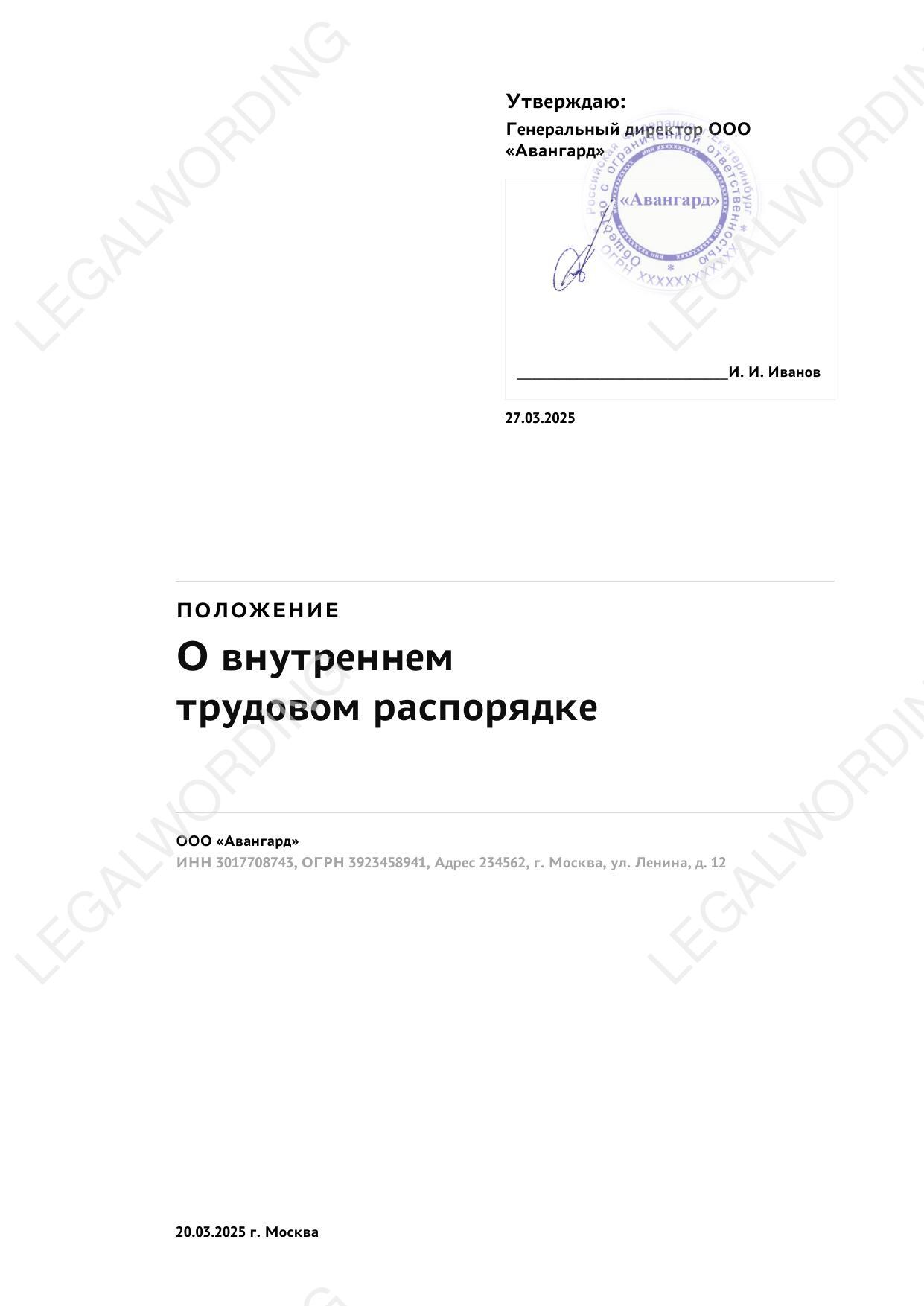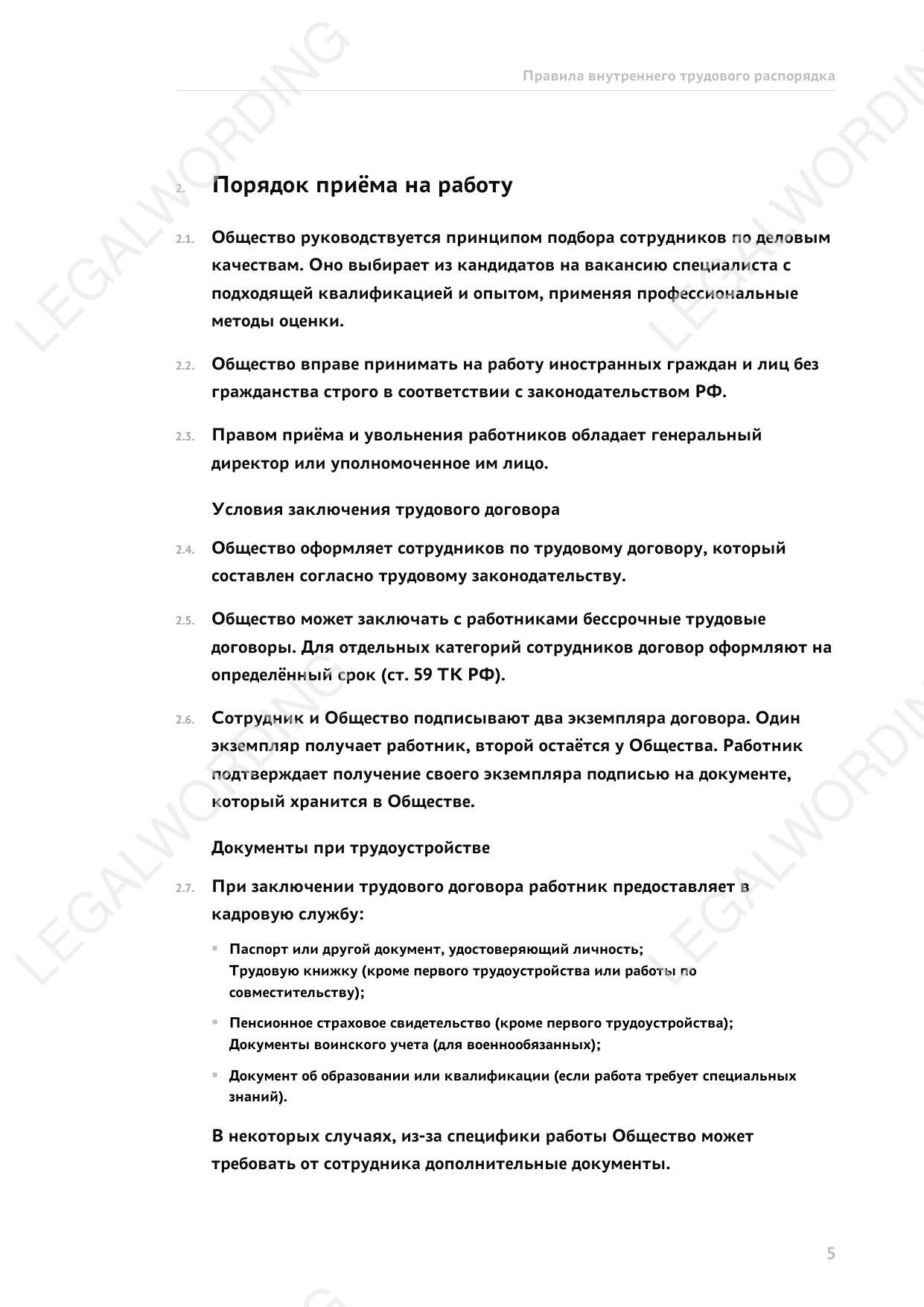 Правила внутреннего трудового распорядка