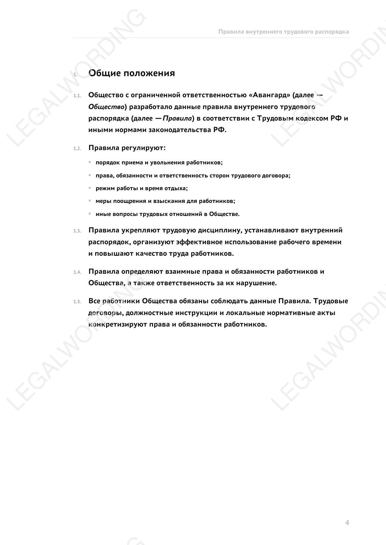 правила внутреннего распорядка организации
