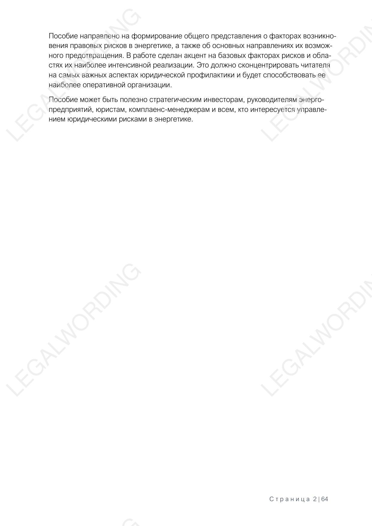 Пособие направлено на формирование общего представления о факторах возникновения правовых рисков в энергетике, а также об основных направлениях их возможного предотвращения.