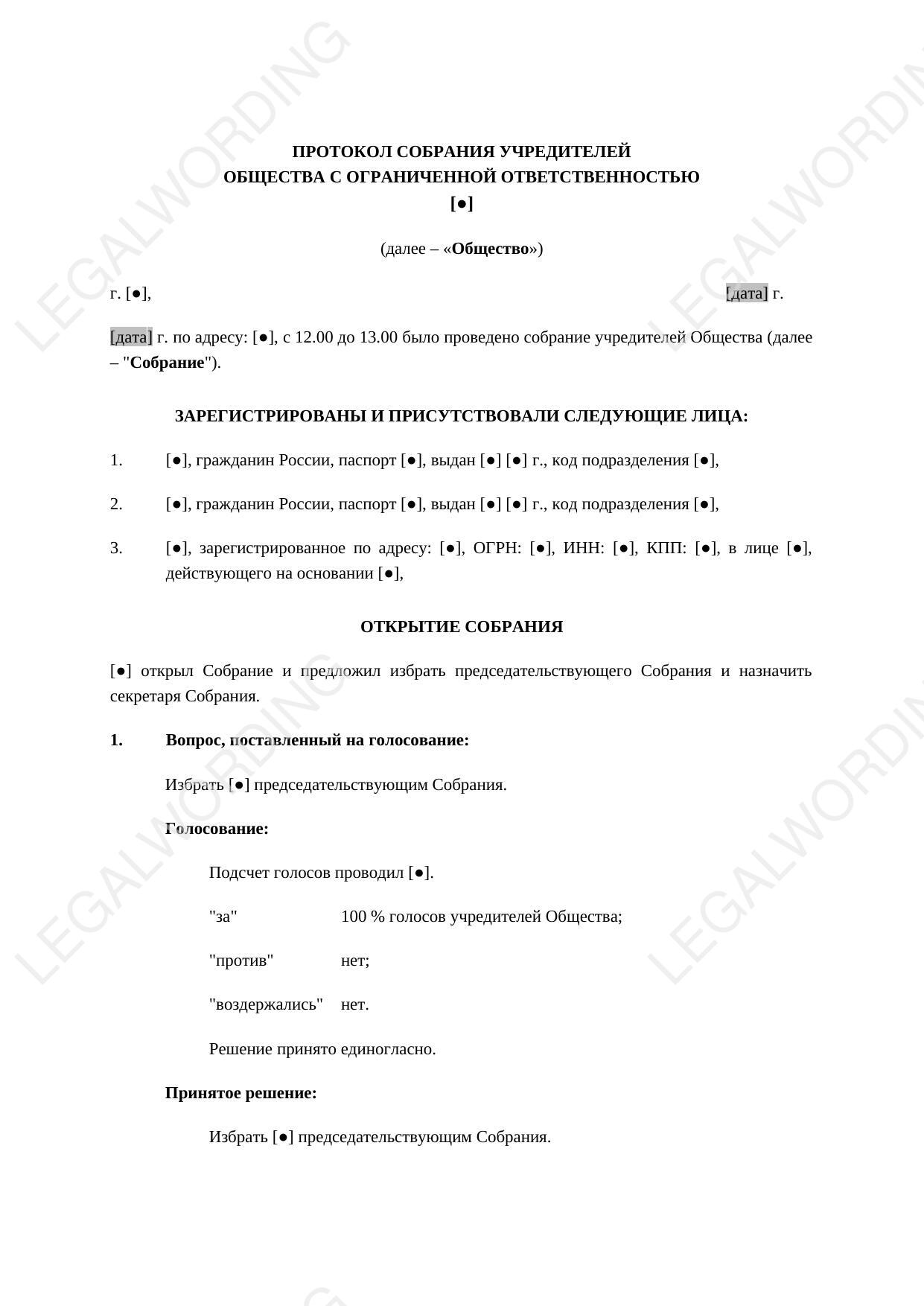 Что включает протокол о создании ООО Образец протокола содержит все необходимые разделы, предусмотренные законодательством: