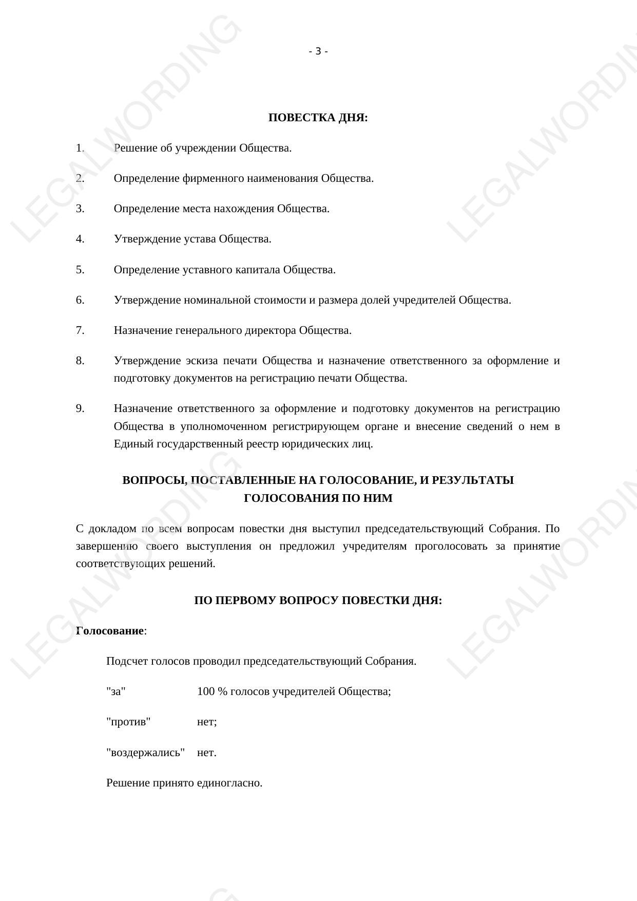 - Утверждение номинальной стоимости и размера долей учредителей Общества.