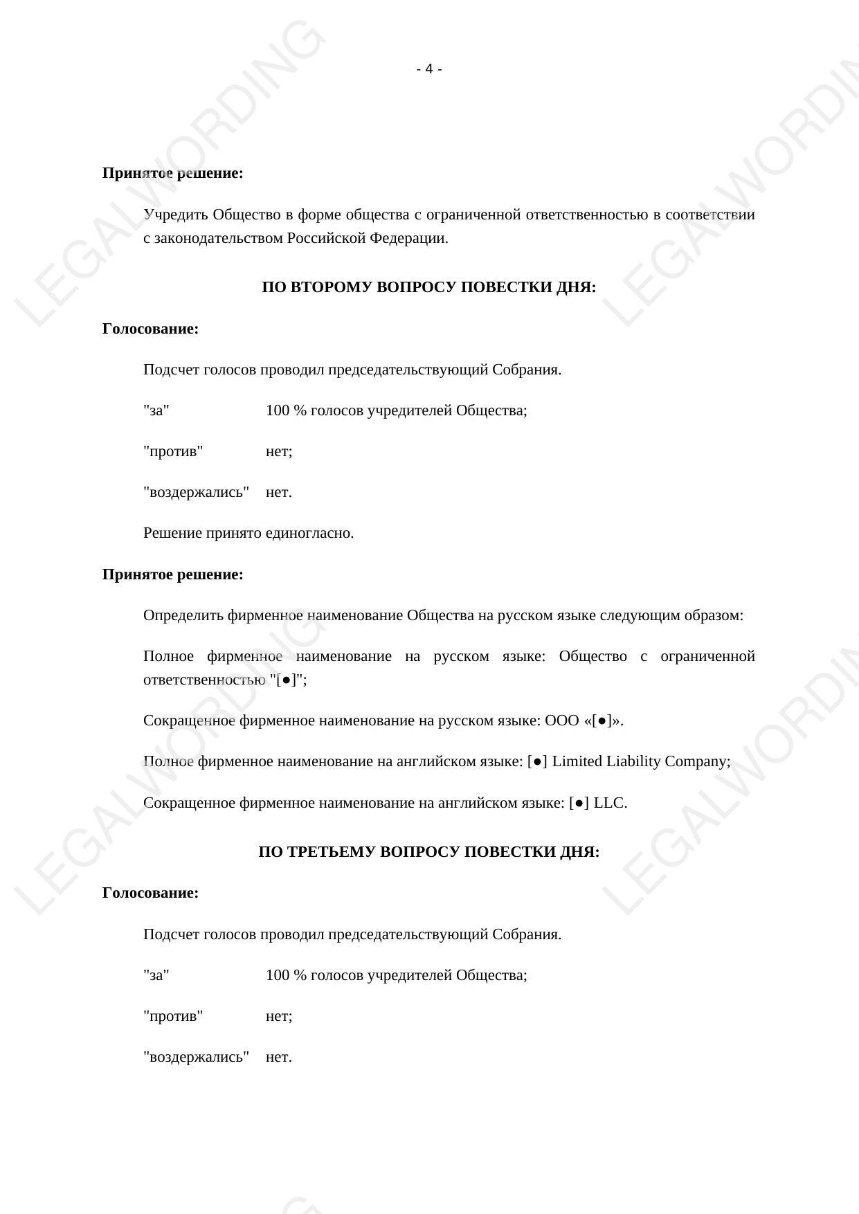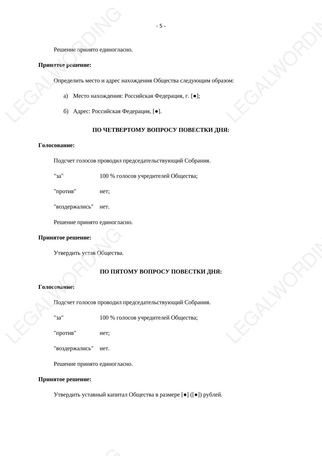В шаблоне учтены все требования от 08.02.1998 N 14-ФЗ «Об обществах с ограниченной ответственностью».