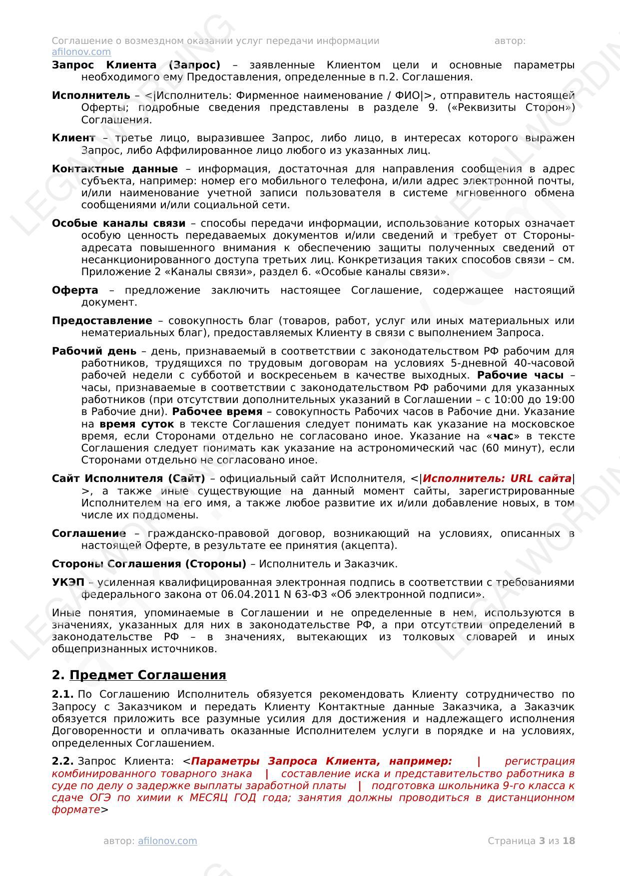 В соглашении указывается запрос клиента. Комиссия считается только от оплат за выполнение этого или аналогичного запроса.
