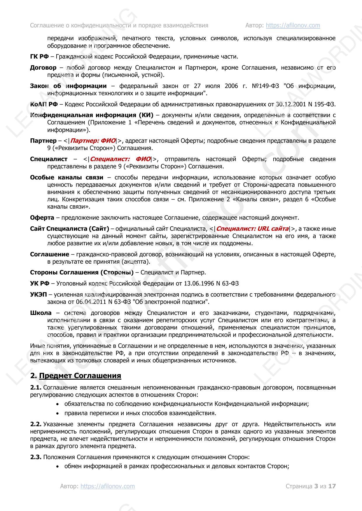 🔸Сфера деятельности Специалиста: онлайн-школа. Типы и примеры конфиденциальной информации сформулированы исходя из этого.