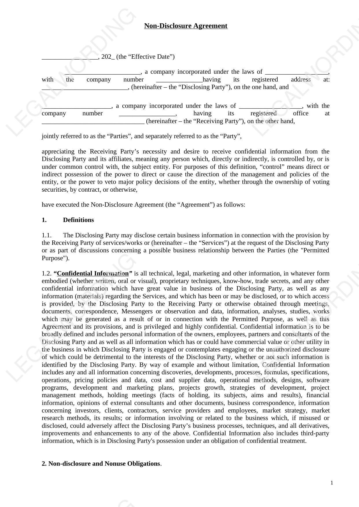 Соглашение о неразглашении направлено на защиту раскрывающей стороны.