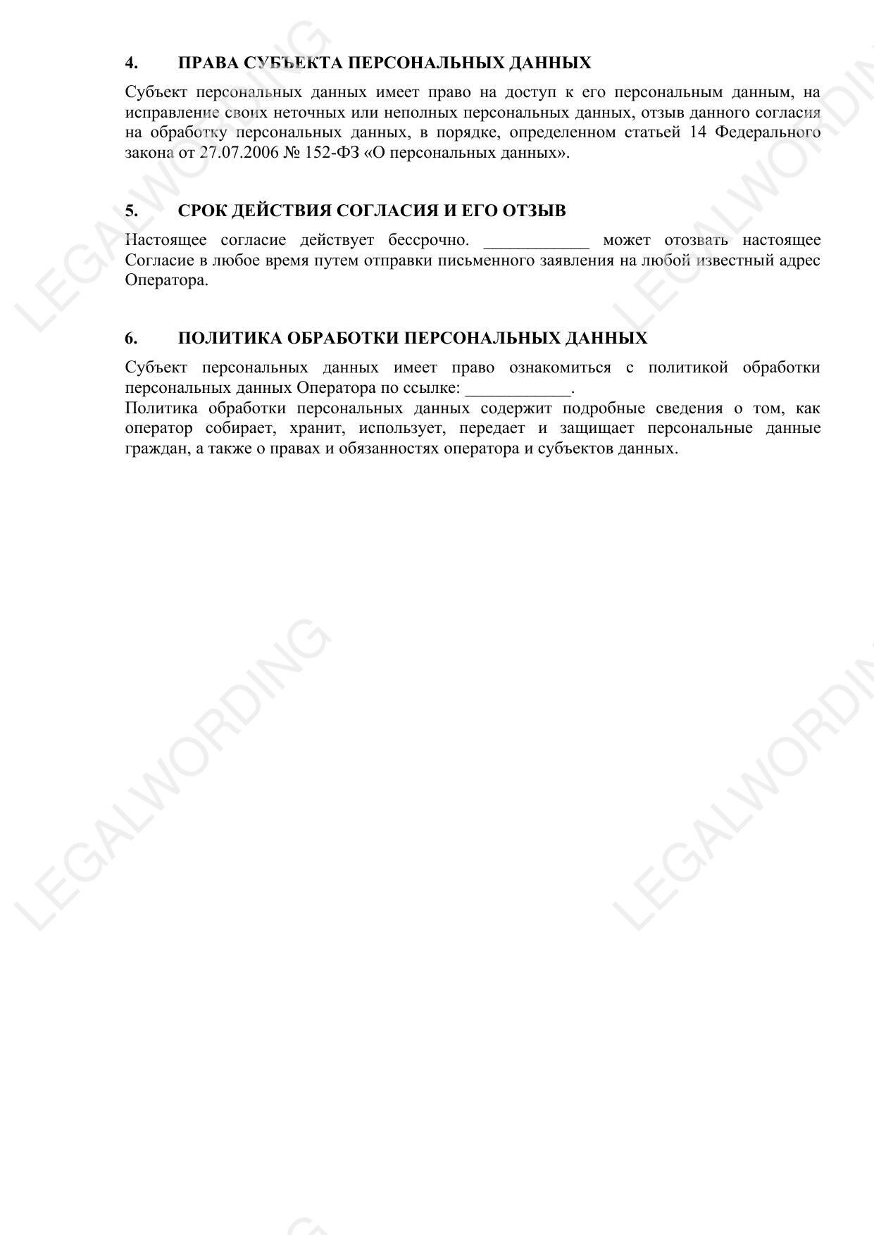 5. Срок действия согласия и его отзыв - длительность действия согласия и процедура его отзыва.