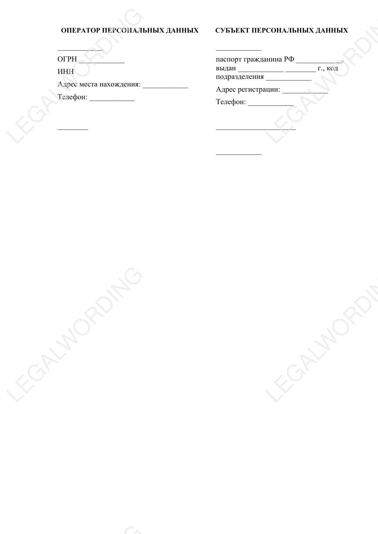 Шаблон согласия на трансграничную передачу персональных данных, составляемый между субъектом персональных данных и оператором. Документ включает в себя важные разделы: