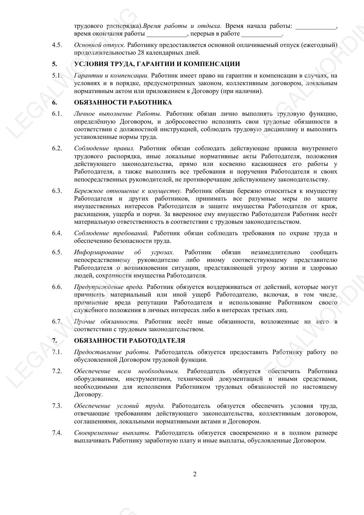 Шаблон трудового договора, заключаемого между работодателем и работником, предназначен для оформления трудовых отношений с учетом требований российского законодательства.